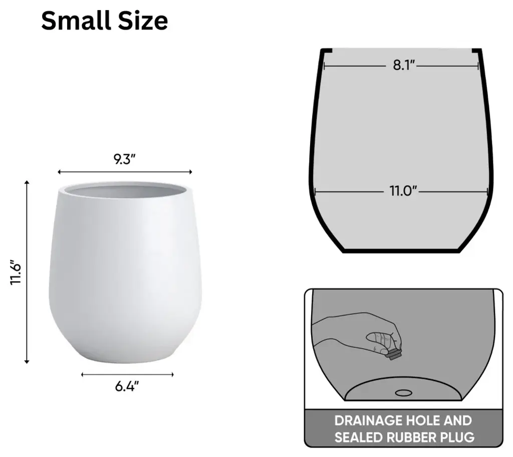 Mount Wilson planters are a perfect blend of style and functionality for plant lovers. The striking flared design makes it a captivating addition to any space. Our planter is crafted from a lightweight fiberstone composite material, blending fiberglass and natural crushed stone powder to provide added strength and durability while remaining lighter than typical stone planters. These planters would be a great addition to any outdoor or indoor space. Enjoy the combination of style and functionality that the Mount Wilson planters offer!•DURABLE & LIGHTWEIGHT: The fiberstone composite material ensures that they are lighter in weight yet still strong and durable. •WEATHER RESISTANT: Fiberstone planters are resistant to frost, UV rays, and cracking, making them perfect for indoor or outdoor use. The .6-inch drainage hole and included rubber plug ensure proper watering and optimal growing conditions for your plants. •STYLISH DESIGN: This modern tapered planter comes in a range of colors and sizes to suit any space especially when used as a single standalone or grouped in a set of three for a striking visual impact. Its contemporary industrial style brings a touch of modern elegance into your home.•SMALL PLANTER MEASURES: 11.8" height x 11" diameter (pot opening 8")•MEDIUM PLANTER MEASURES: 16.7" height x 15" diameter (pot opening 11.7")•LARGE PLANTER MEASURES: 21.7" height x 20" diameter (pot opening 15.7")•BUY WITH CONFIDENCE: Our customers'' satisfaction means everything to us. We take pride in our product"™s superior quality and craftsmanship. If for any reason you are at all unsatisfied with your purchase, simply contact us. We are so confident in our products that we offer a 30-day limited warranty (see item warranty information for details).•Made In Vietnam