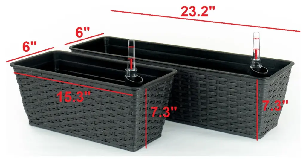 Intricately hand-woven, these beautiful wicker pots are the perfect aesthetic accompaniment to nature"™s most luscious designs. Made from 100% recyclable materials with plastic lining for added protection with our very own highly popular self-watering system, these wicker pots offer more than meets the eye. Whether if it"™s for plants, flowers, or succulents, these wicker pots and their calming subjects will add a little extra character and tranquil charm to your space. SELF-WATERING: Sub-irrigation from a reservoir keeps plants nourished, even when you"™re not at home up to a weekECO-FRIENDLY: Being made from recyclable material, it not only takes care of plants but also the environmentWEATHER RESISTANT: Being UV stabilized and frost resistant this durable planter is perfect for all weatherEASE OF ASSEMBLY: Simple design and lightweight structure makes it easy to assemble, move or storeBEAUTIFUL WICKER FINISH: helps beautify and make your garden/corner more stylishWater level indicator included