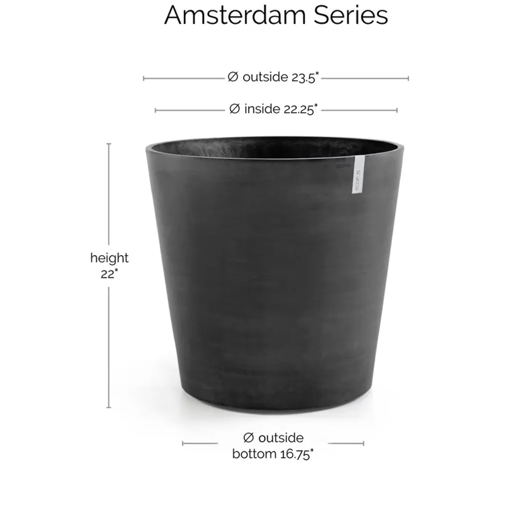 Ecopots Amsterdam Wheels Durable Modern Round Indoor/outdoor Recycled-based Composite Flower Pot Planter, Dark Grey, 23.5"