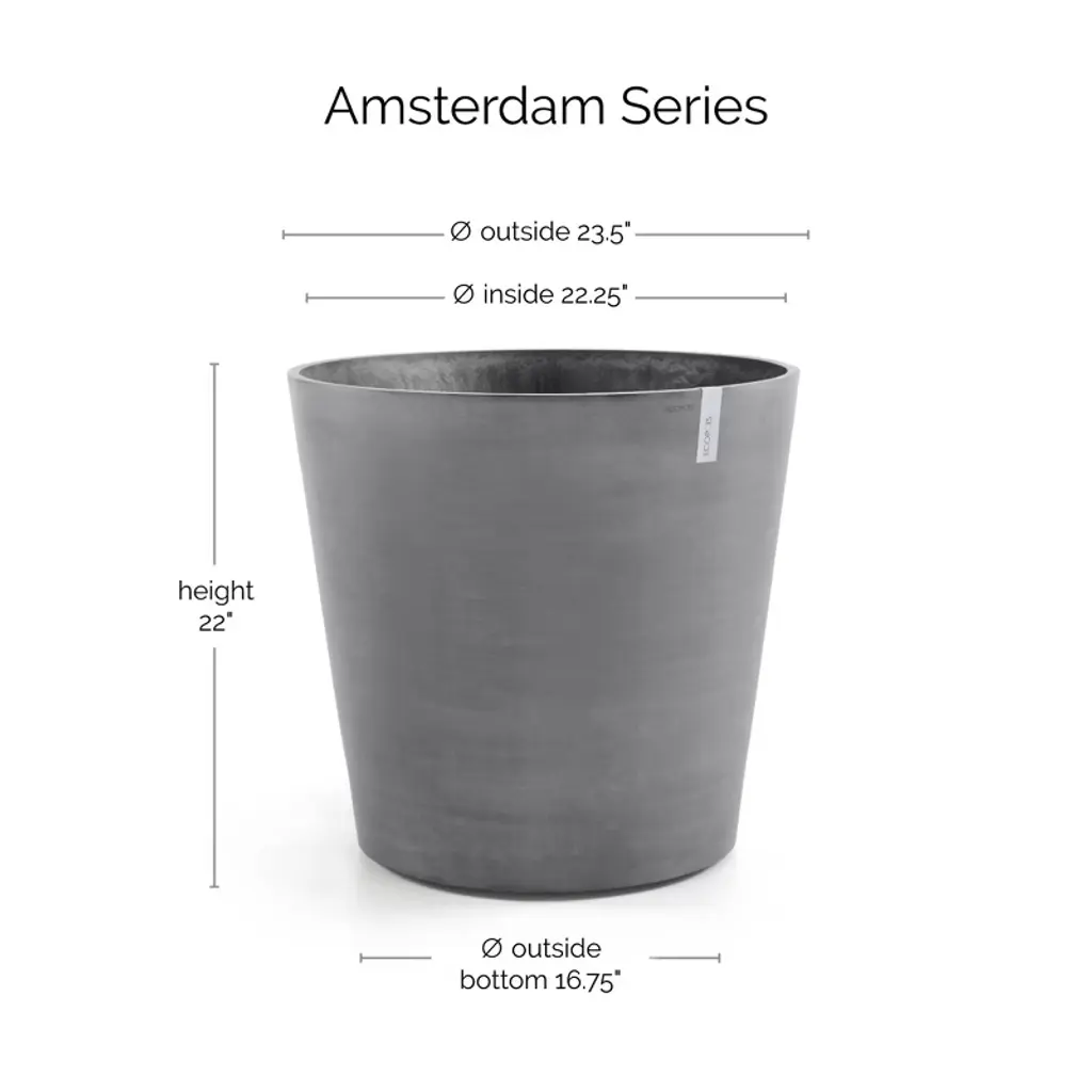 Ecopots Amsterdam Wheels Round Recycled-based Composite Flower Pot Planter, Grey, 23.5"