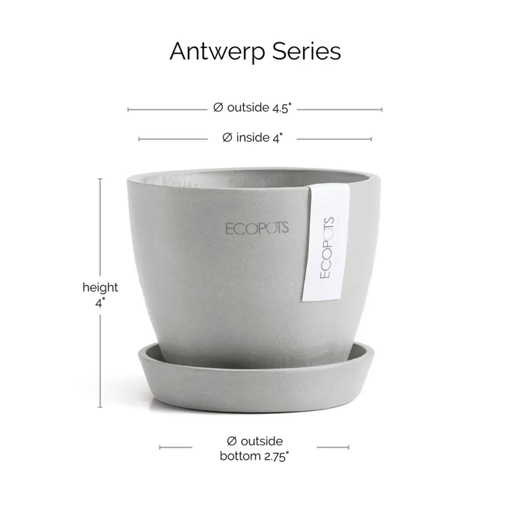 Ecopots Antwerp Mini Durable Modern Round Indoor/outdoor Recycled-based Composite Flower Pot Planter, White Grey, 4.5"
