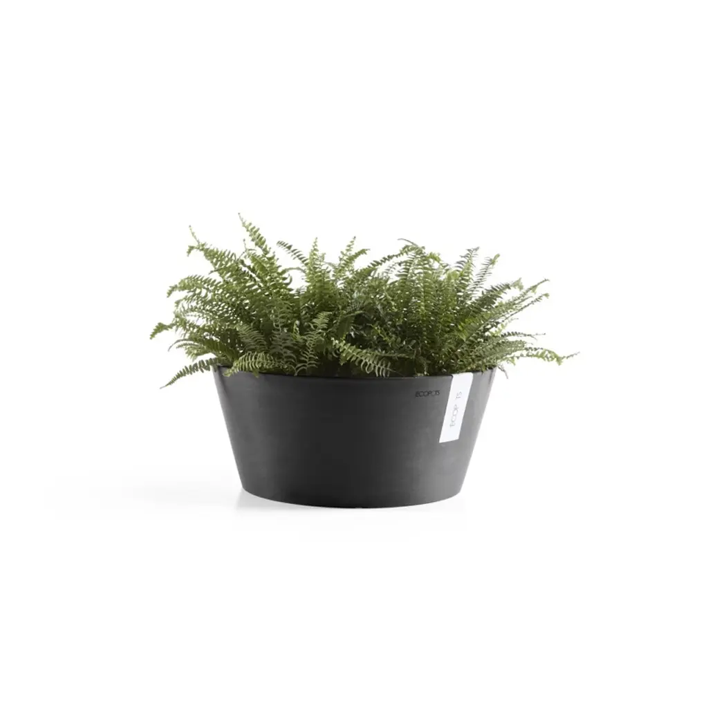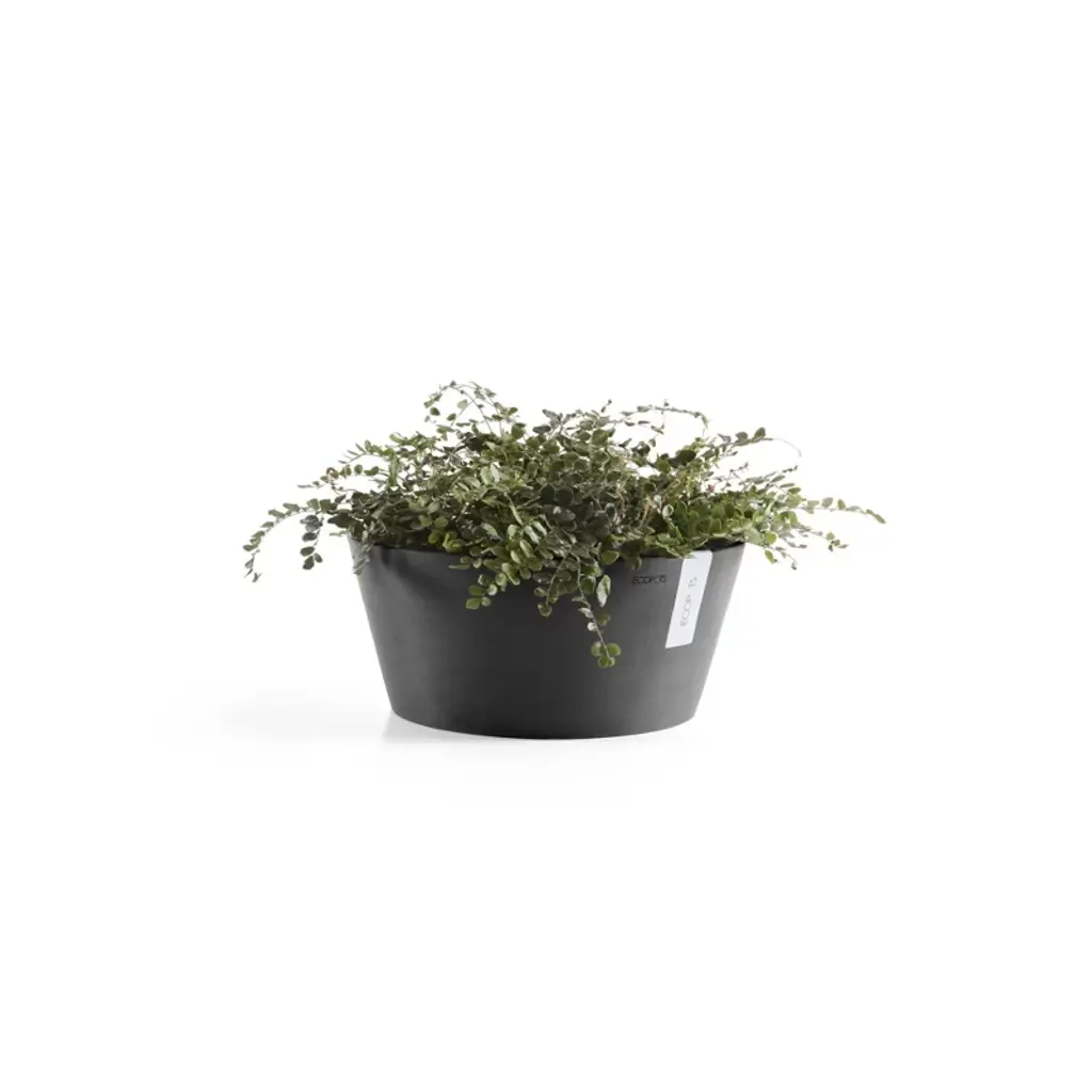 The Ecopots Frankfurt is a stylish, mid-height round flowerpot, suitable for combining small plants or herbs. This flower bowl is sure to look magnificent on your table or another raised surface. While this flowerpot is ideal for herbs and other low-growing plants, it still has sufficient space for a variety of plants, whilst being compact enough not to overwhelm your outdoor space. Although the Ecopots Frankfurt is typically used outdoors, it can also act as a stylish addition to your interior. You might like to place it on your worktop with a combination of aromatic herbs, meaning they are at a mere arm's length when you start cooking. The round flowerpot comes available with matching round saucer (sold separately). It does the job of protecting your surface and collecting excess water, as well as harmonizing with style of the mid-height flowerpot.