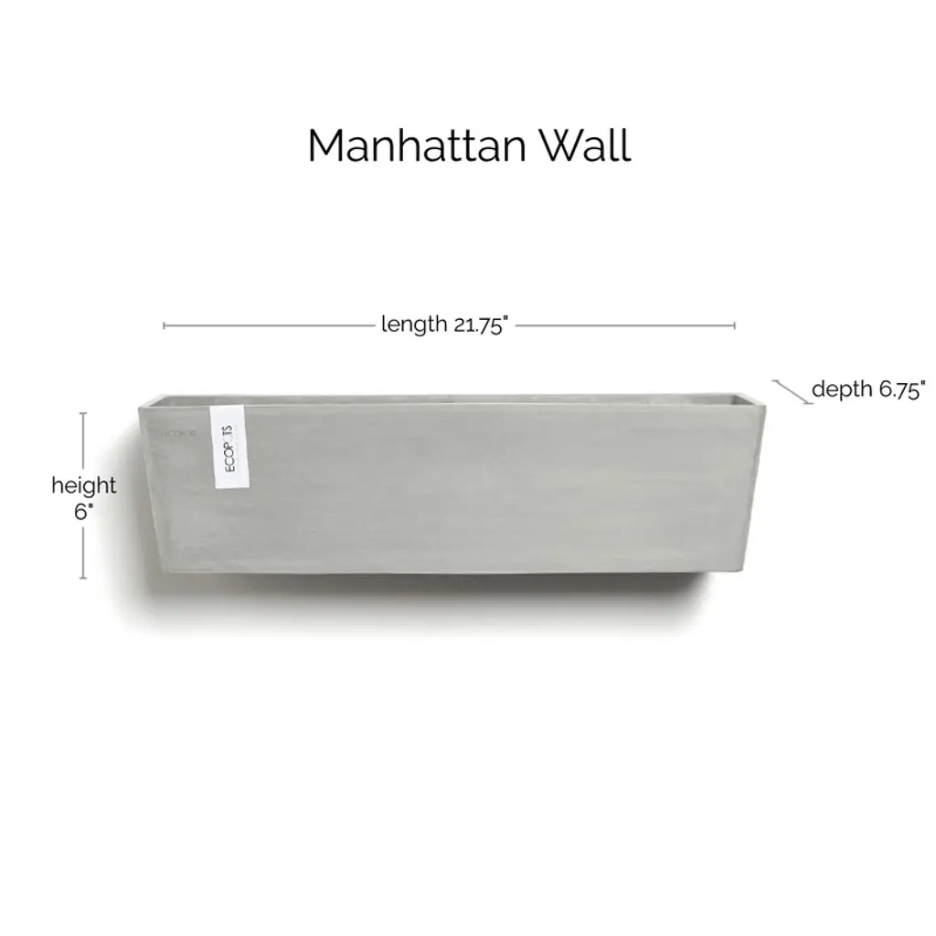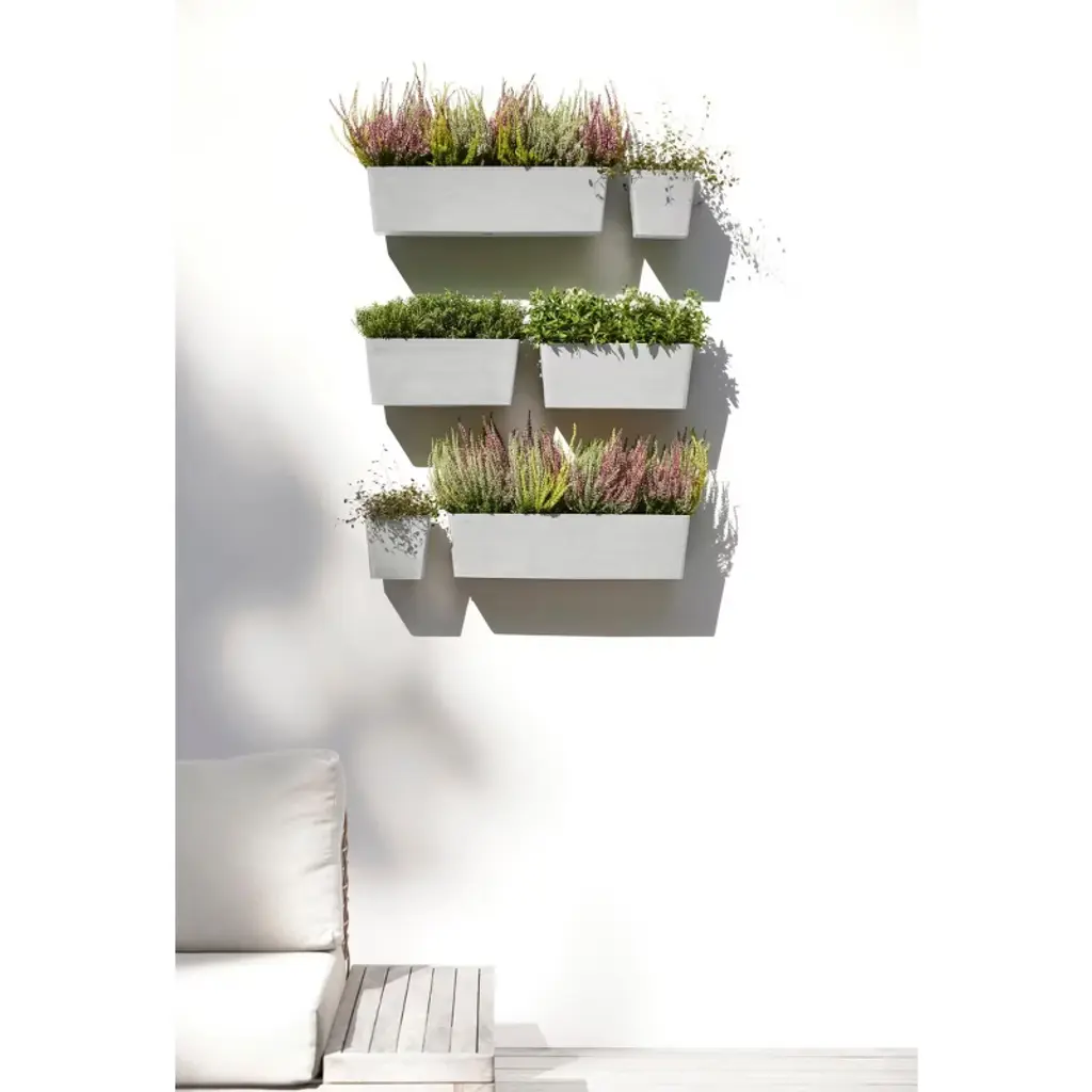 Ecopots Manhattan Wall Durable Modern Rectangular Indoor/outdoor Recycled-based Composite Hanging Flower Planter, White Grey, 21.5"