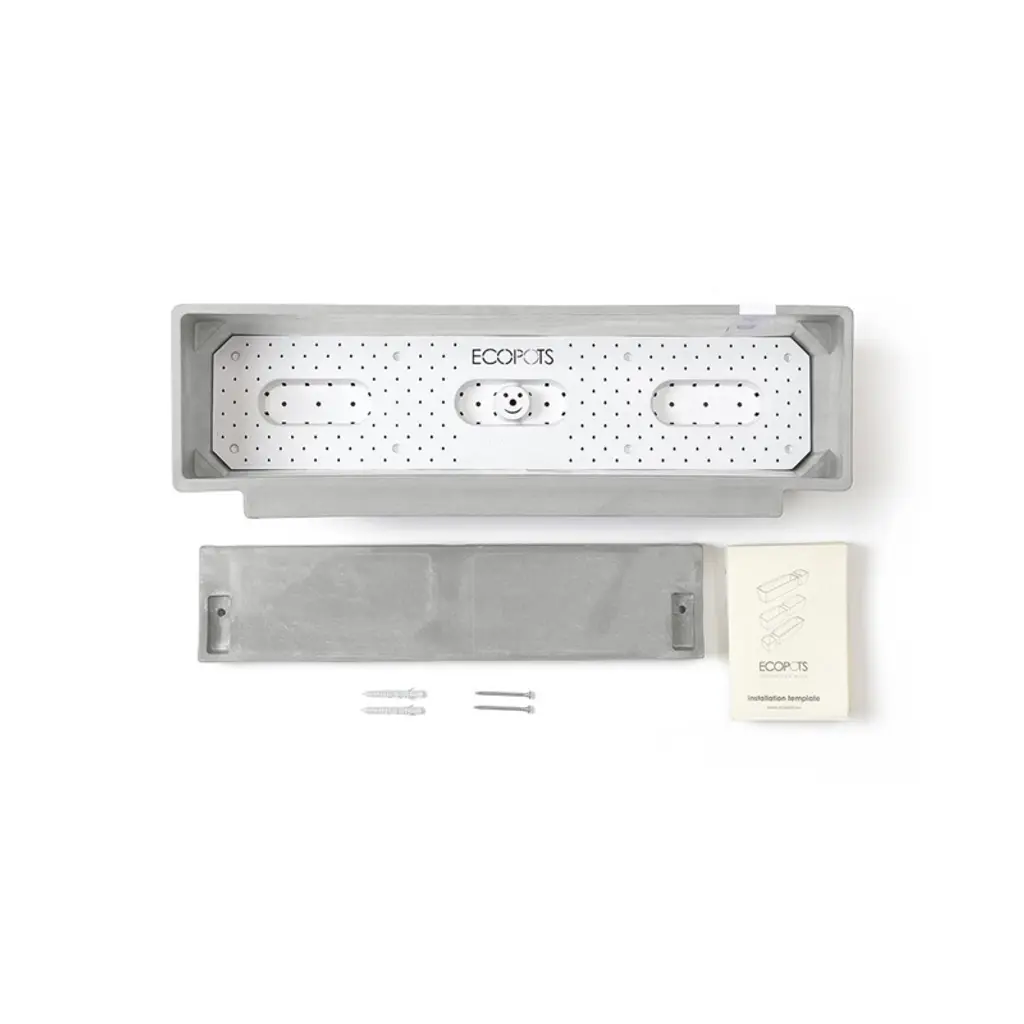 The Ecopots Manhattan Wall is a modular hanging flowerpot for all your vertical garden projects. These flowerpots are ideal if you only have limited outdoor space, perhaps because you live in the city, or because you only have a small balcony and still want to enjoy some green surroundings. The shape and size of this elegant pot are ideal for plants that don't grow tall, hang downwards or spread horizontally. You might even decide to create an edible garden by growing strawberries in them, for example! A unique feature of the Ecopots Manhattan Wall is the modular design of the pots, allowing you to combine different sizes and shapes (rectangular and square) to fit any wall, in and around your home. This makes it easy to create a personalized vertical garden to suit your specific space and preferred style. With the user-friendly hanging system, attaching the flowerpots to the wall couldn't be easier. The planter comes with the installation template, which employs ready-to-use patterns to make installation of the pots much simpler. Simply place the sheet of paper against the wall to find out exactly where to drill the holes. Includes an integrated water reservoir supplies water efficiently, allowing your plants to grow and bloom in the most ideal conditions possible and, most importantly, allowing you to enjoy plants that are both healthy and vibrant.