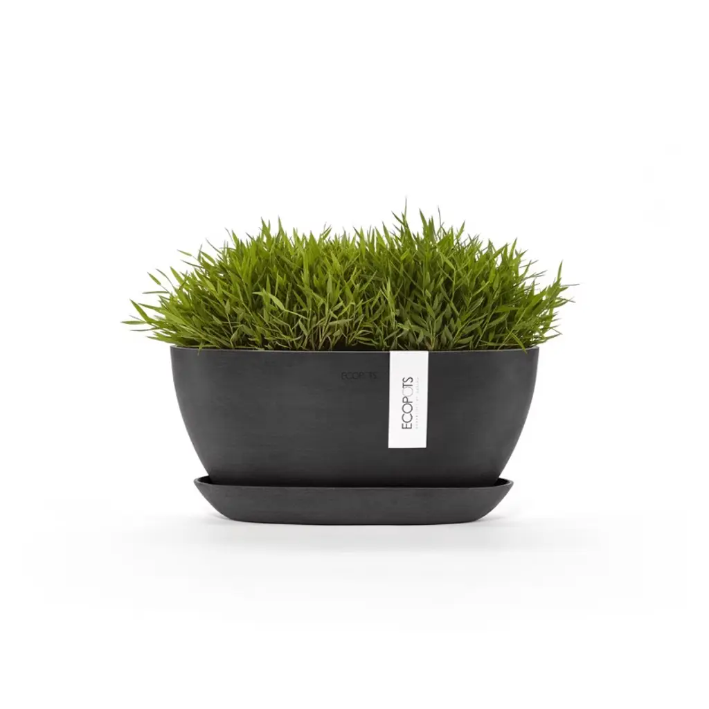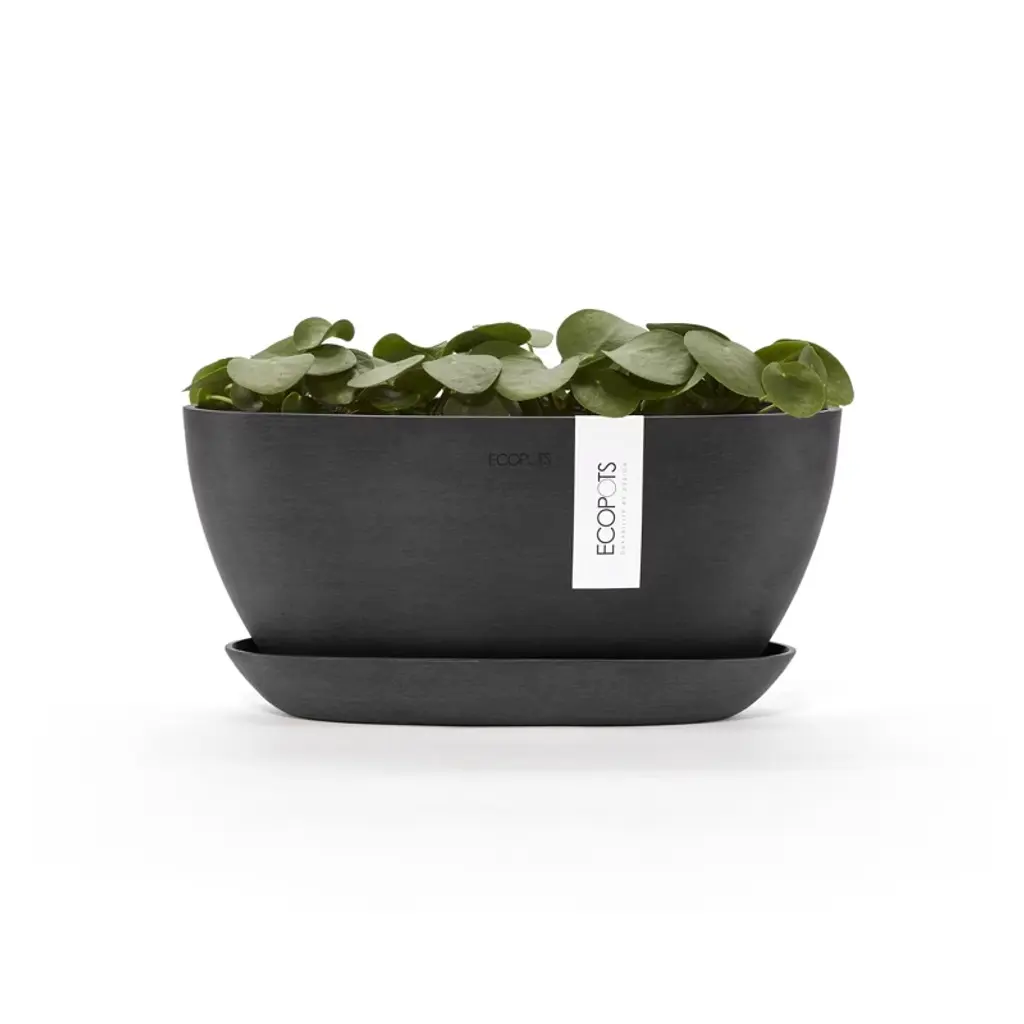 Ecopots Sofia Durable Modern Oval Indoor/outdoor Recycled-based Composite Flower Pot Planter W/ Water Reservoir, Dark Grey, 12"