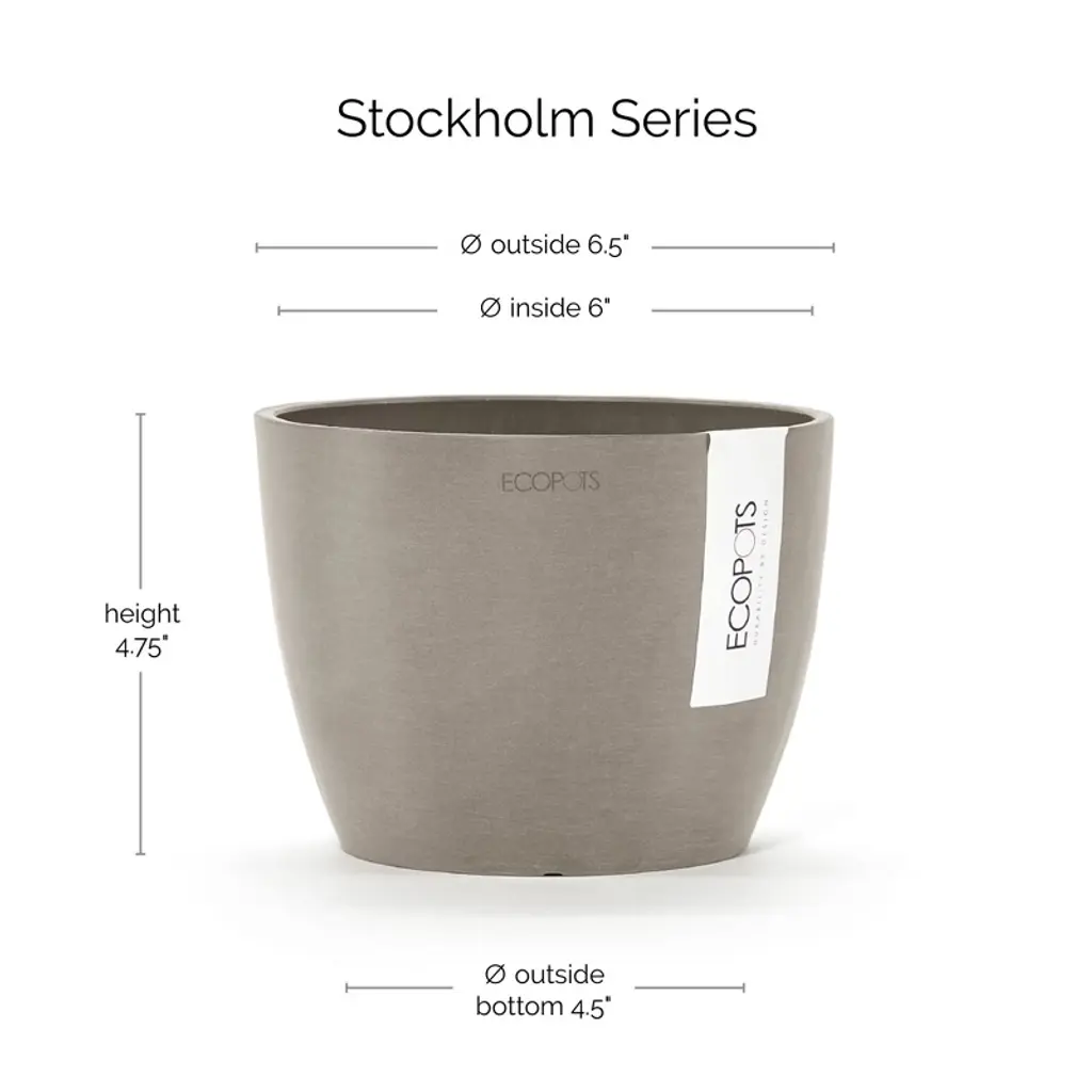 Ecopots Stockholm Mini Durable Modern Round Indoor/outdoor Recycled-based Composite Flower Pot Planter, Taupe, 6"