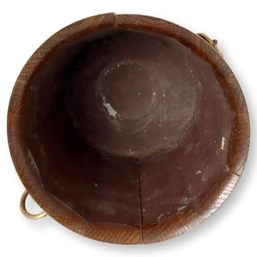 Antique English banded planter or pot with loop handles. This is a "banded" piece, it is not glued. It is held together tightly with the brass banding. Made circa 1880.