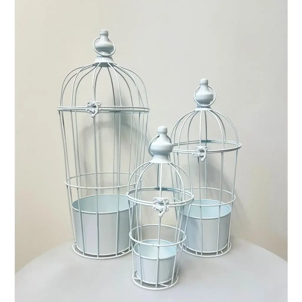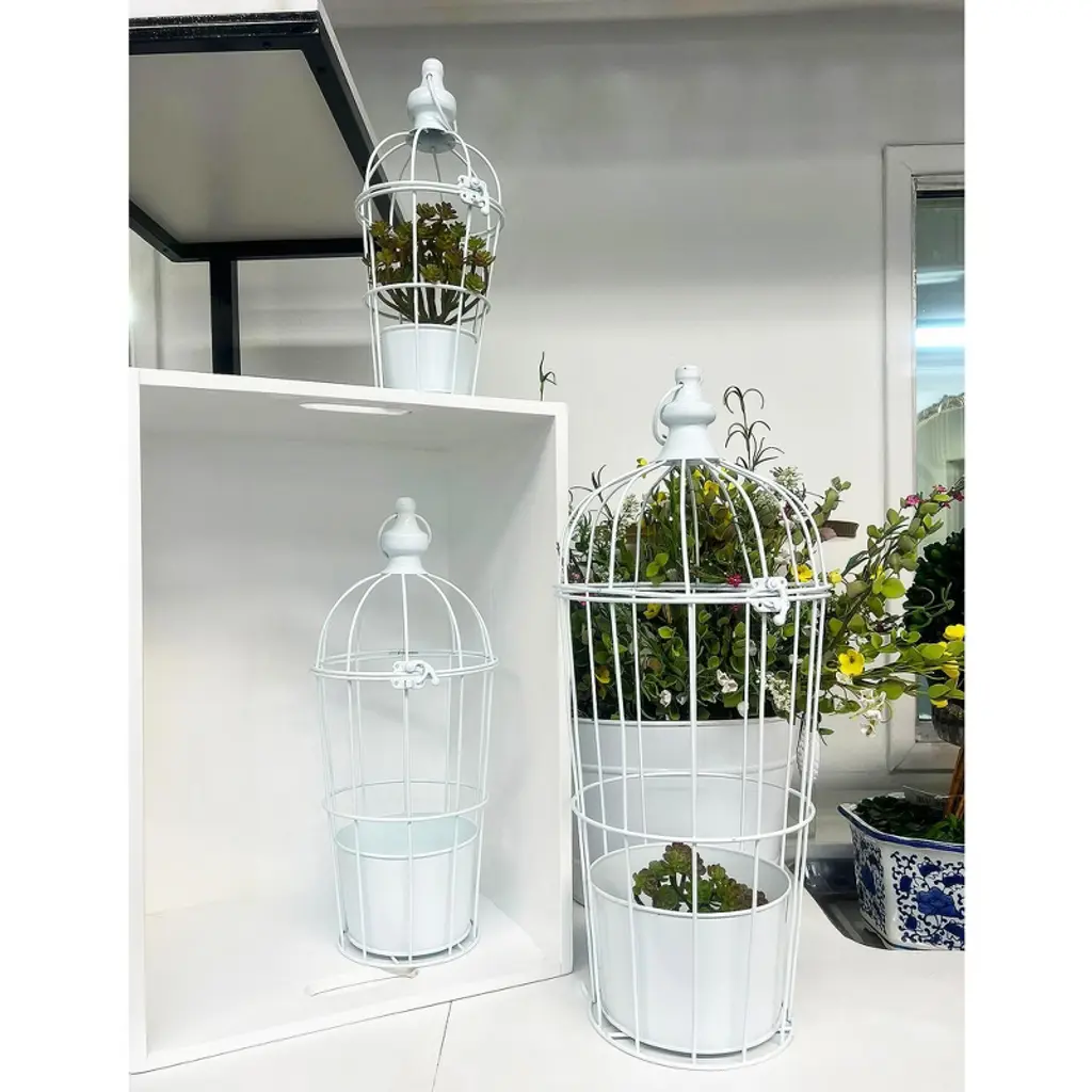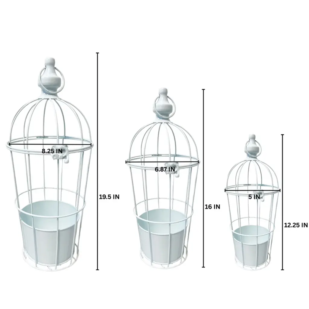 The Essential Decor & Beyond 3-Piece White Metal Bird Cage Hanging Planter Decorative Accent is a charming and adaptable set that brings rustic elegance to any home or garden. With their classic design and versatility, these decorative planters make a lovely addition to both indoor and outdoor spaces, enhancing your décor with a timeless touch. Set of Three: Includes three different sizes of planters, offering flexibility for various plants and spaces. Large: 19.5" in height, 8.25" in diameter Medium: 16" in height, 6.87" in diameter Small: 12.25" in height, 5" in diameter