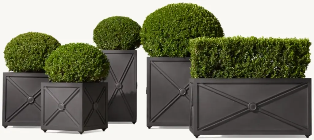 Inspired by planters from 19th-century European estate gardens, ours are handcrafted of heavy-gauge aluminum with a zinc finish and are predrilled for easy planting.