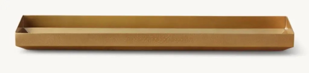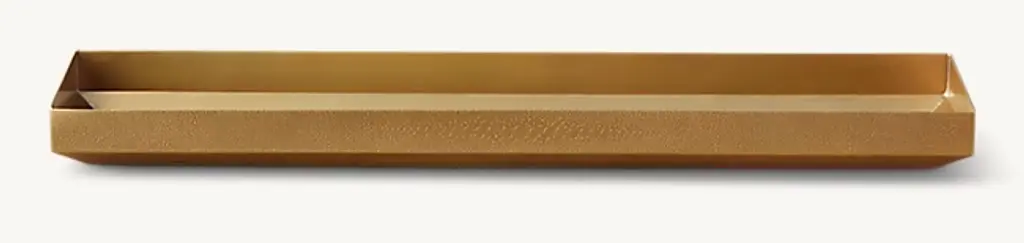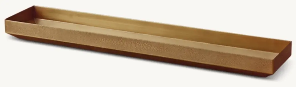 Our artisan-crafted brass trough features a richly textured surface that lends luxury to its simple form. The intricately etched design echoes the pattern and markings of natural shagreen.