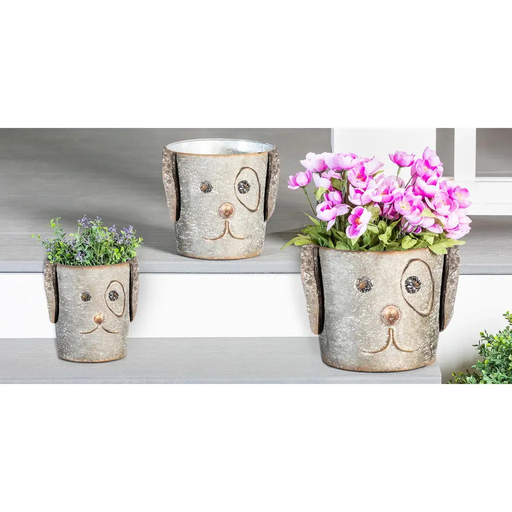 Evergreen Metal Dog Bucket Planters, Set Of 3