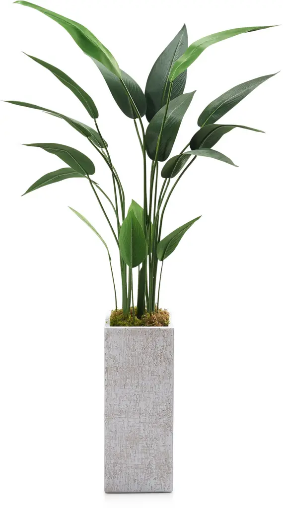 Graceful, larger leaves with smooth ridges—just like the real thing. The Faux Travelers Palm Tree brings you to paradise, again and again. Potted in our Sanibel Planter to give it a clean, classic foundation.