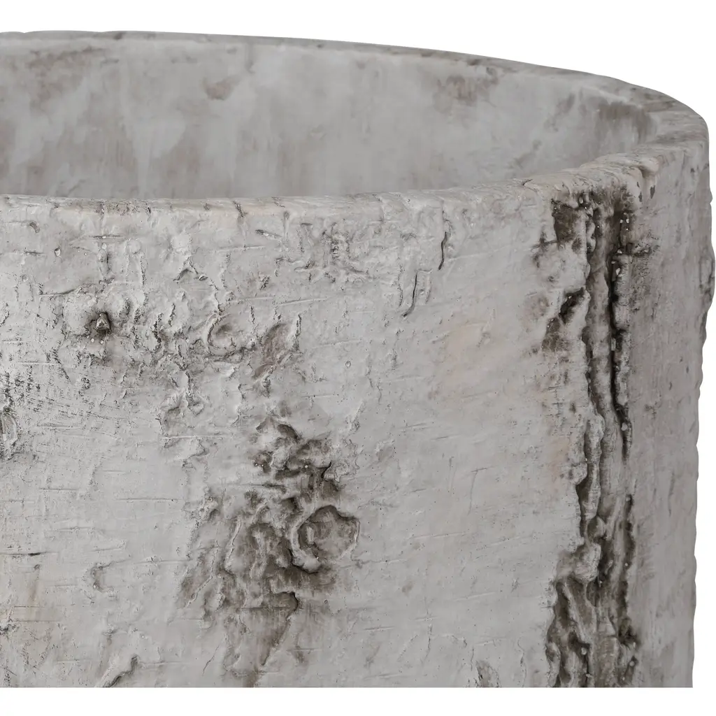 The Faux Birch Small Planter is made of fiber cement painted to look as if it is an aged antique. The black, beige, and pale gray hues are applied to mimic tree bark the raised veining running along their sides creating the same rough feel that Mother Nature achieves in raw wood.