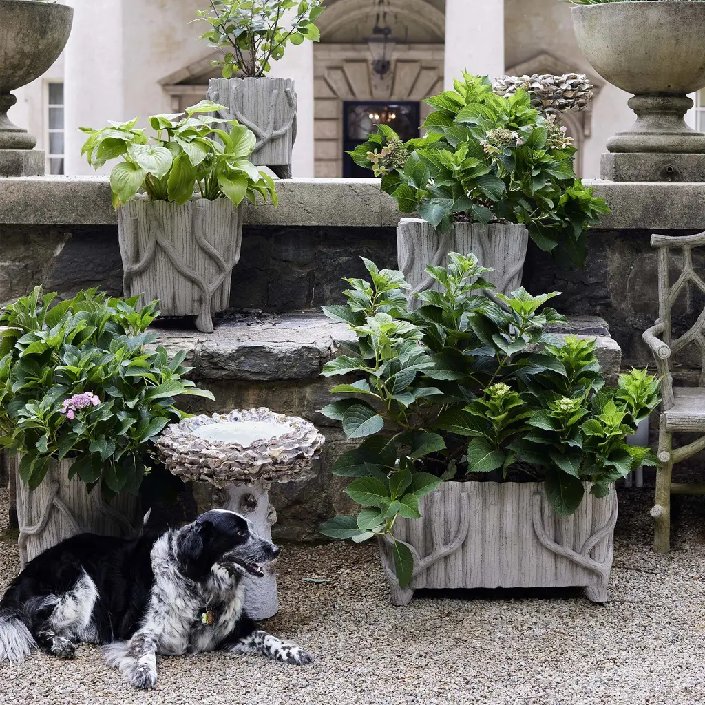 The flowing twig-like details along the ribbed surface of the Faux Bois Planter were hand-applied by artisans who “sculpt” the concrete over a metal frame to look like a rustic faux bois artifact. The Portland finish that settles into the natural crevices enhances the illusion of age that will bring a nice hint of texture to indoor or outdoor settings. Ornamented with tree branches, the concrete planter sprouting with plants will fool the eye into thinking it is a true antique. Ships In 7-10 Business Days Ships In 7-10 Business Days This image is for illustrative purposes only. The colors shown are accurate within the constraints of lighting, photography, and the color accuracy of your screen.