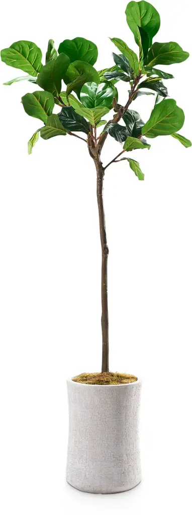 The Faux Fiddle Leaf Fig Tree brings lifelike greenery to your space year-round. Large, sculptural leaves add a little drama (in a good way!) with lots of vibrant color. Potted in our Laurel Planter with a nature-inspired hue and carved horizonal lines.