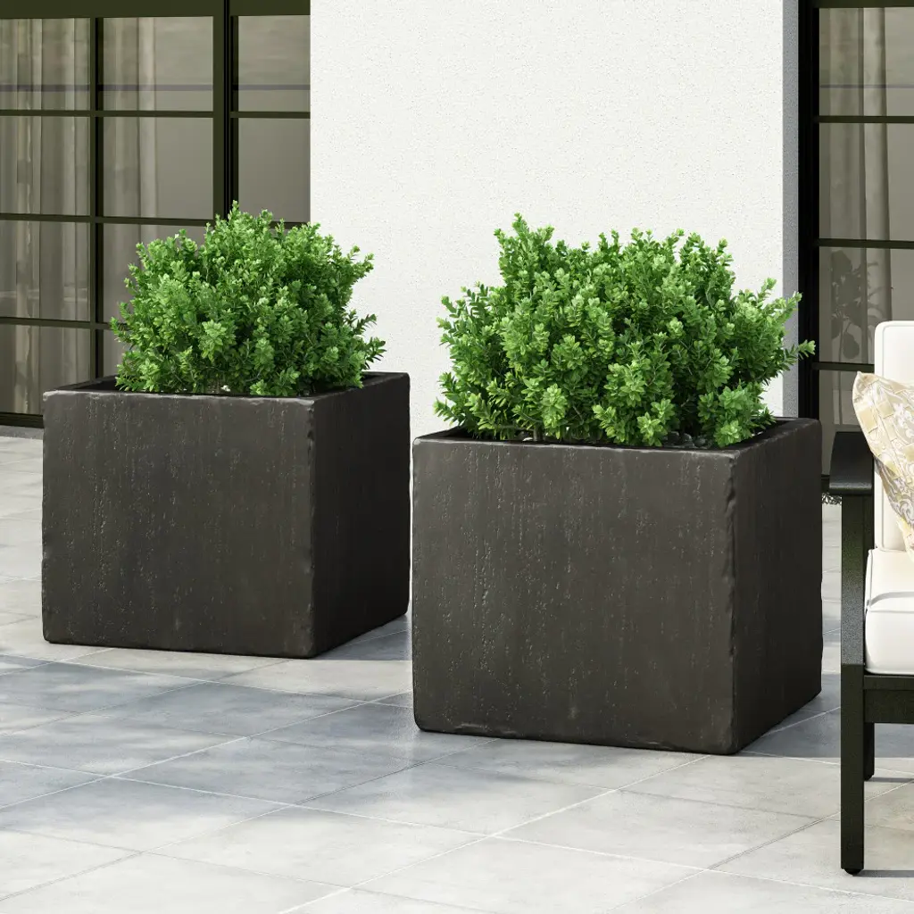 Line your front walkway or patio space with a planter set of immediate elegance. From its simple square design to its lightweight concrete structure, our planter set will instantly enhance your patio or backyard space with style. These accessories offer a durable construction to ensure that your plants have a stable home to grow. Complemented with a stone-like finish, this planter set offers a classic look to your garden or porch. Perfectly crafted to hold your plants, this set is the perfect accessory for your green thumb. A TOUCH OF PERSONALITY: Bring your outdoor area to life with our delightful cast stone planters. With sleek aesthetics, these accessories will not only enliven your backyard or patio space but also provides space to grow plants. SQUARE DESIGN: This planter set features clean square shapes, giving your outdoor space a simple yet stunning accent. This offers a natural look that will seamlessly blend into any decor. CAST STONE: Constructed with lightweight concrete, this planter set offers a rugged, stone-like design that also has a highly durable structure and is resistant to outdoor elements. DIMENSIONS: Choose an accessory that is the perfect size for you and your outdoor space. Each planter has dimensions of 21.50" W x 21.50" D x 18.75" H. You will love how much your space can transform with the simple addition of this accessory. NO ASSEMBLY: This planter set comes ready to use straight out of the box. No assembly is required. This comes as a set of two.Includes: Two (2) PlantersMaterial: Lightweight ConcreteFinish: BlackHand-Crafted DetailsNo Assembly RequiredDimensions: 21.50 inches deep x 21.50 inches wide x 18.75 inches high