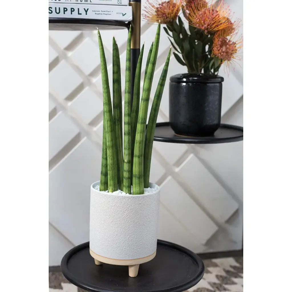 The modern Fenna footed pot offers a unique two-tone finish, with a bubbled white finish on top and smooth cream color on the base and feet. Made to fit a 2.5" drop-in pot.