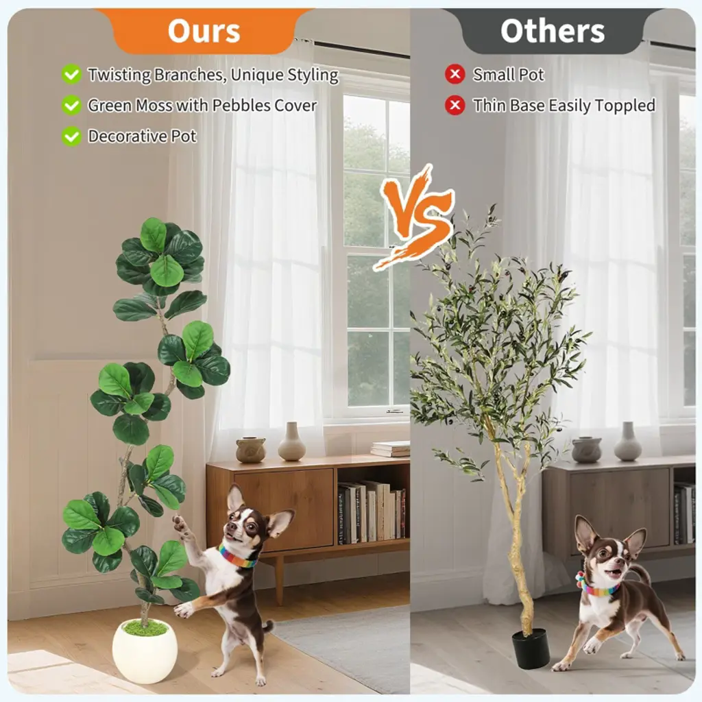 Bring the vibrant beauty of nature into your home with this highly realistic artificial fiddle leaf fig tree. Perfect for spaces where live plants struggle, this faux tree features silk leaves, a natural-looking trunk, and a stylish white planter—delivering instant elegance with zero upkeep.
