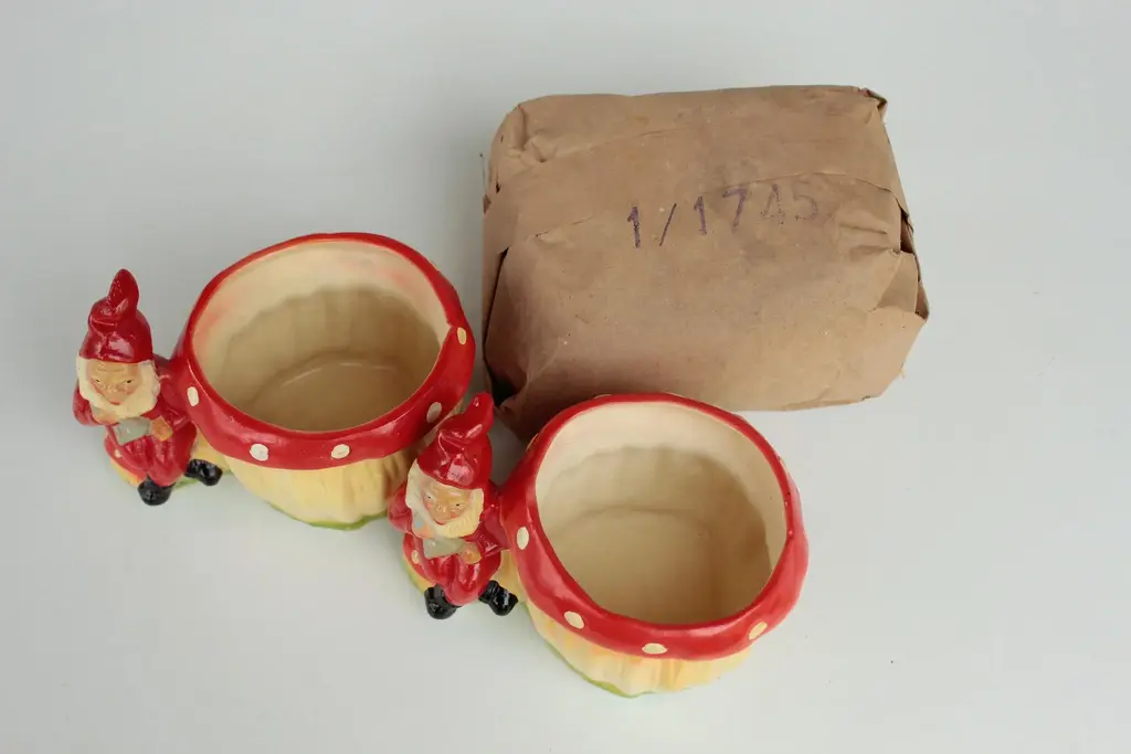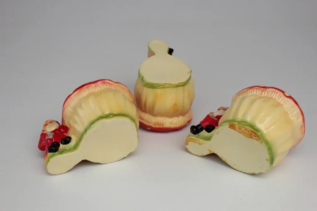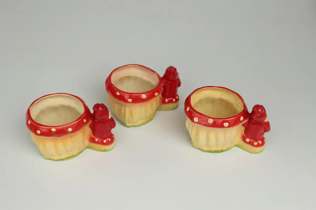 Set of three ceramic figure vessels, made in East Germany between 1930 and 1990. The producer is the ceramics manufacturer Hertwig & Endert in Dörnfeld/Thuringia. Modeled, fired, colored on clay from our own pit; in Dörnfeld, probably 1970s. Excellent condition. Height 12 cm Width 16cm Depth 11cm
