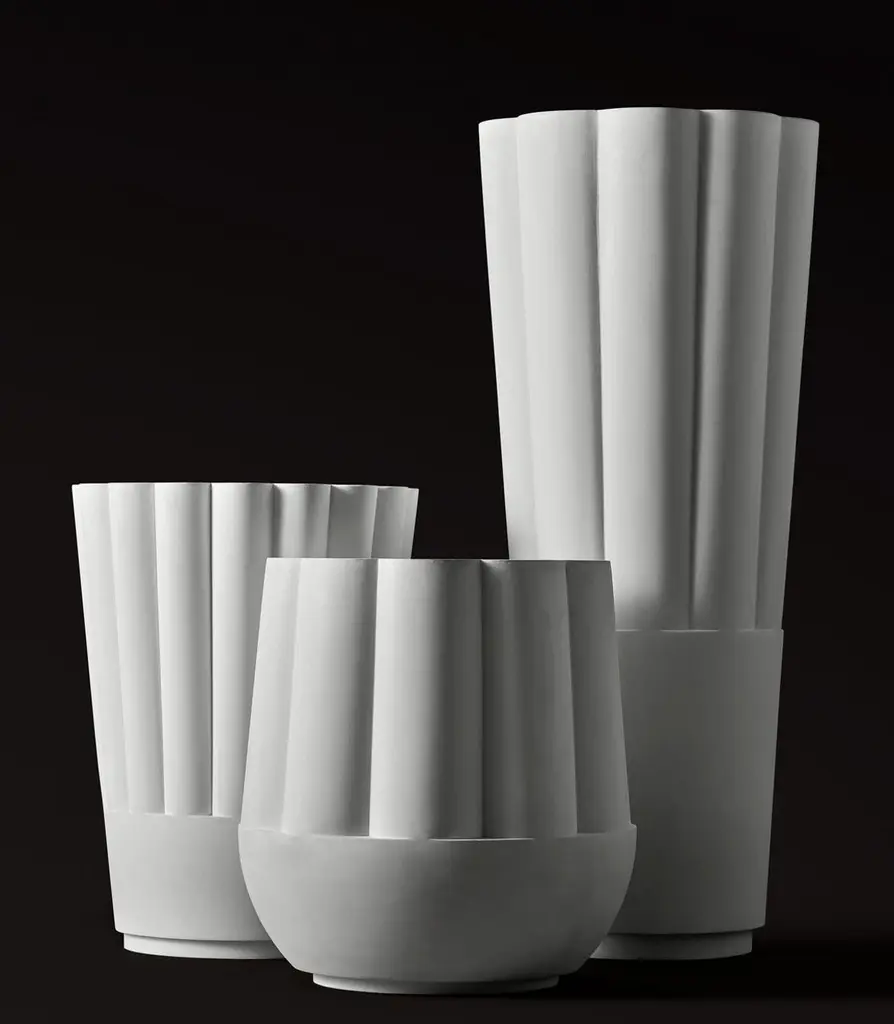 BYBLOS 01 by SIRAKFluted Urn PlanterThe BYBLOS trio of planters is an exploration of Phoenician references, drawing inspiration from the 8000-year-old city of the same name. The Egyptian Revival shapes acknowledge Egypt’s profound dominance over the region and its cultural influence on its subjects. The Deco-style fluting pays homage to the grand columns found at the National Museum of Beirut — itself a notable Egyptian Revival structure that underscores this overlap. BYBLOS is perfect for framing entryways and nested in vignettes with its smaller counterparts. Made by hand in California.