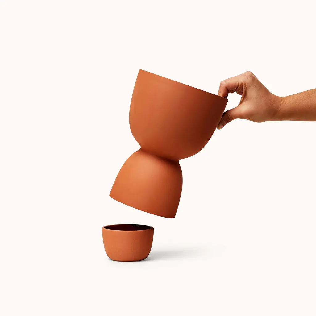 Artists Sierra Yip-Bannicq and Jazmin de la Guardia started the ceramics studio Franca with the idea that there are common threads that bind us. Each piece thoughtfully connects Sierra and Jazmin's different ethnic backgrounds and merges the traditional with the modern. Elevate your plants—literally!—with this versatile and playfully designed planter that can be used on either side depending on the size of your plant.