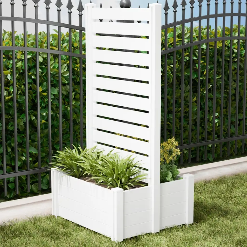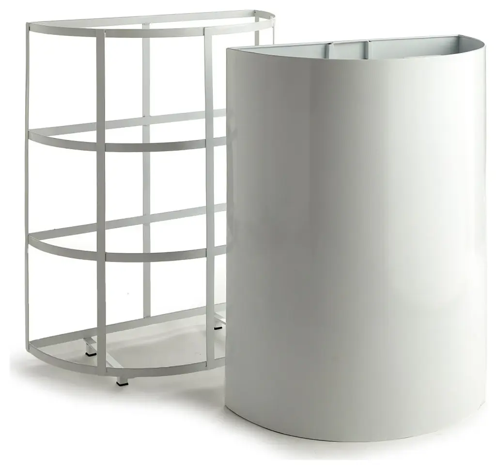 Raised off the ground for proper drainage, this well-scaled demilune planter is the modern interpretation of an antique planter. It is fully powder-coated, and has a removable liner with recessed handles. A statement piece for between windows, garage doors and patio.