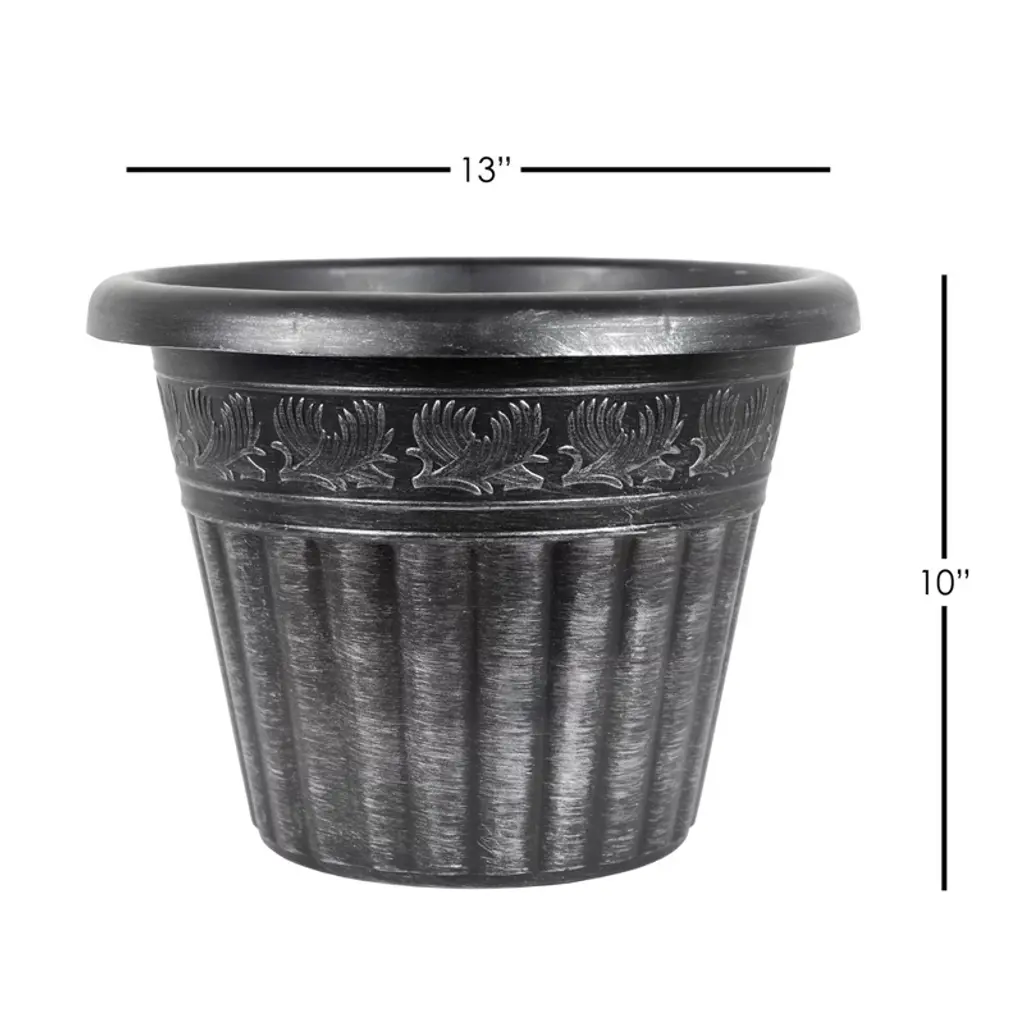 Garden Elements Indoor/outdoor Plastic Dragon Banded Round Planter, Silver, 13"