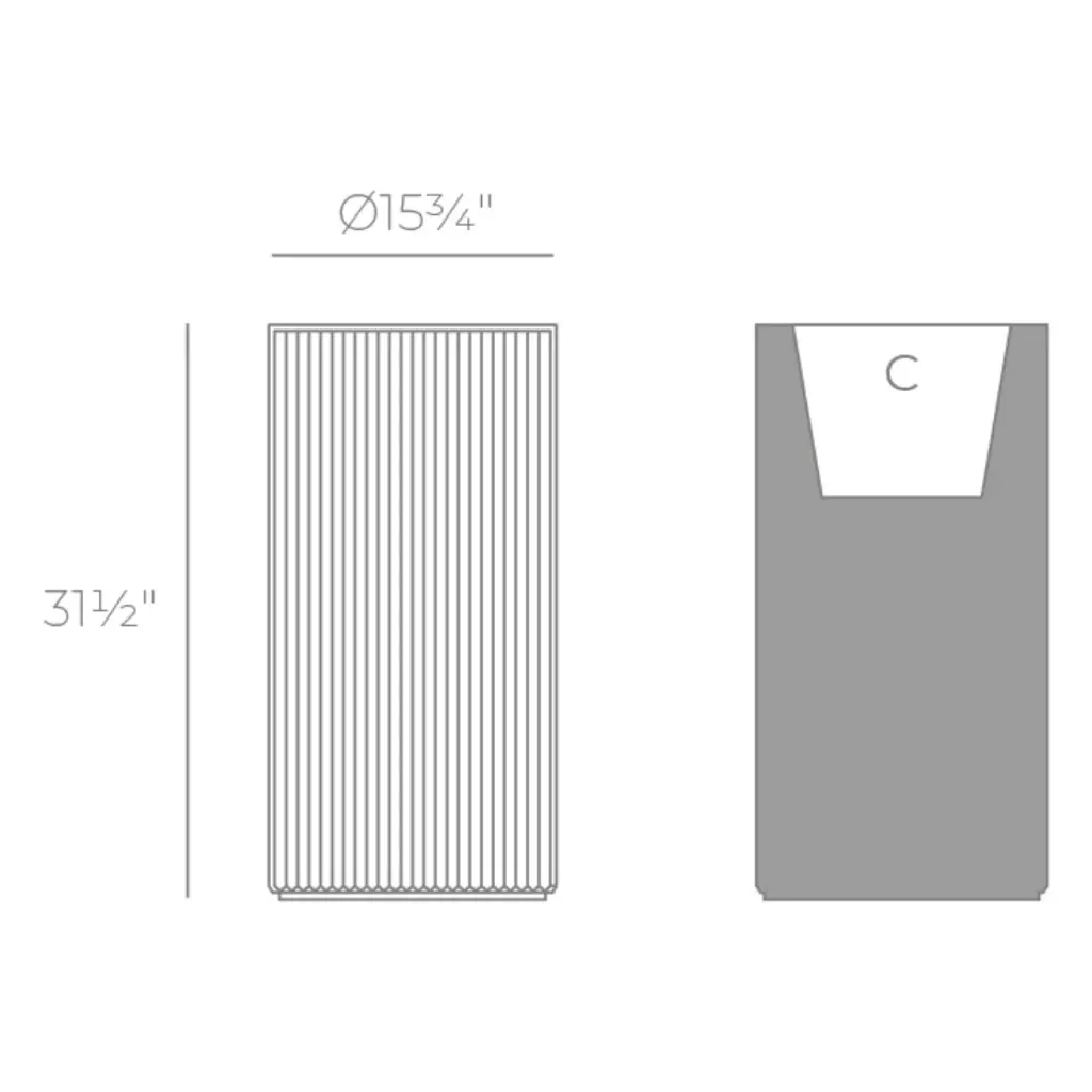 Elevate your outdoor spaces with the Art Deco glamour of the Gatsby Cylinder Planter from Vondom. Crafted with high-grade polyethylene resin by the renowned designer Ramon Esteve, this planter features a seamless drum construction with ribbed detailing, bringing timeless sophistication to your home. Fend off the elements with a piece designed to resist water and weather, perfect for housing your favorite plants. Highlights