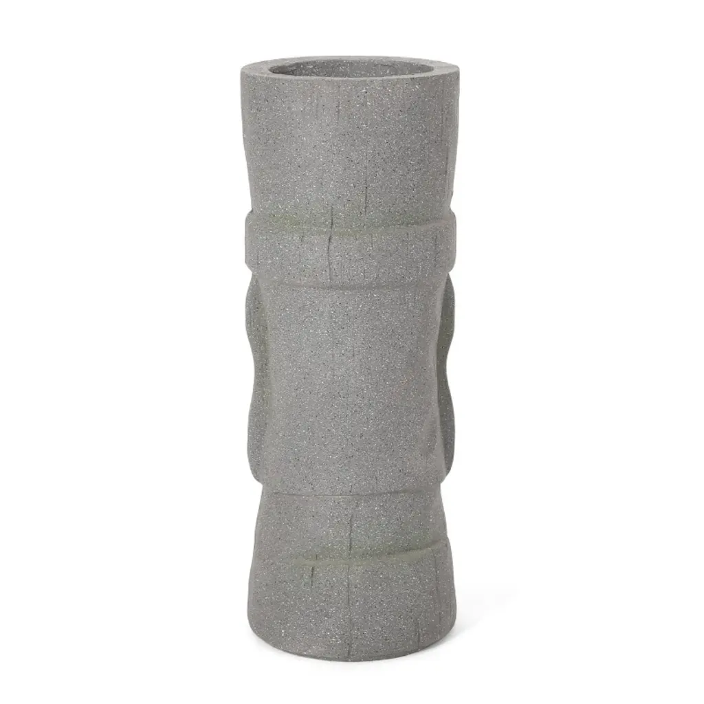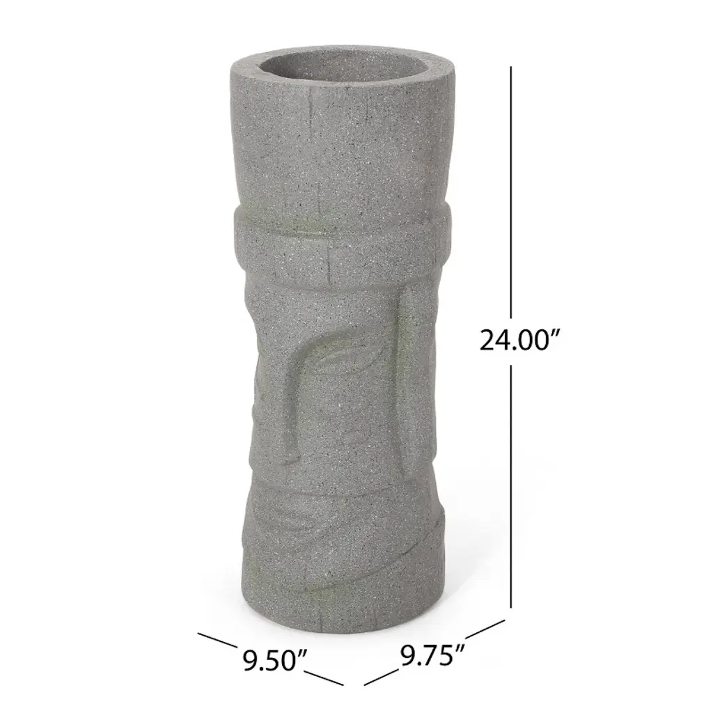 Gdfstudio Gomer Outdoor Polynesian Decorative Lightweight Concrete Planter, Stone Gray