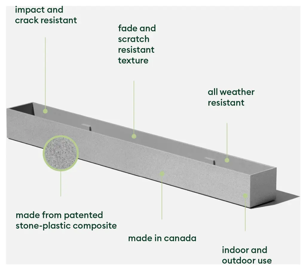 Clean lines and minimalist design make the Veradek Geo Short Planter an effective option for adding a bit of greenery to counters, tabletops or windowsills. Complemented by its modern appearance, the Geo Short is thoughtfully curated with versatility in mind"”growing herbs or succulents, organizing desk spaces and creating elongated centerpieces for the dinner table will become easy as ever. This lightweight rectangular planter is proudly crafted in Canada from a patented plastic-stone composite, making it resistant to cracks, fading and UV and easy to clean. With the perfect balance of design, structure and purpose, the Geo Short is an essential to any space, any season.