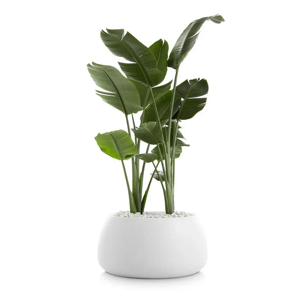 The serene look of the Gobi collection of planters is inspired by the gently rolling landscape of desert dunes. These round pots with their elegant curves are specially designed for use in outdoor spaces as they are made from 100% recyclable polyethylene. Each of the five models in the collection has its own distinct personality. This is the Gobi 3 planter, with a diameter of 31 in and a height of 17 in. Gobi 3 is a great option for plants with large leaves, such as Swiss cheese plants, but also for shrubs like box or for aromatic plants. It can be used on its own to decorate a corner of an outdoor lounge or eating area, but also together with several other planters, including models from this collection. For example, it goes especially well with Gobi 1 as it is a very similar shape and they look like members of the same family. Features