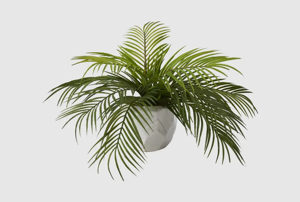 Green Hawaiian Palm In White Polyester Ceramic Planter