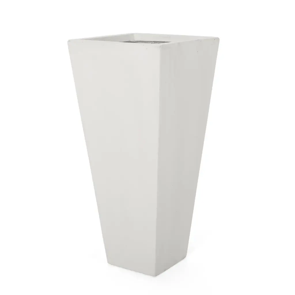 Gulches 13" x 28.5" Outdoor Modern Cast Stone Planter (White): Enhance your outdoor decor with our 13" x 28.5" white cast stone planter. Its modern design and durable materials make it perfect for showcasing your favorite plants in style.