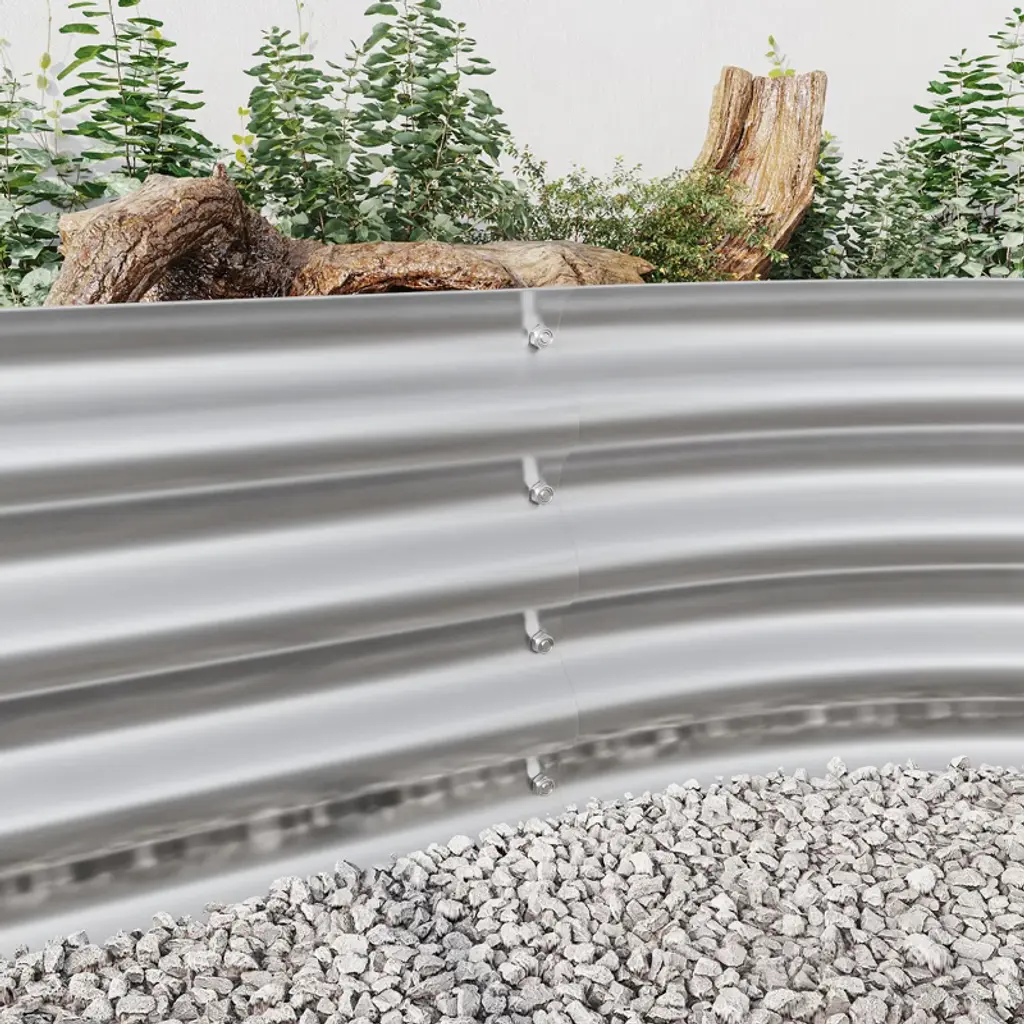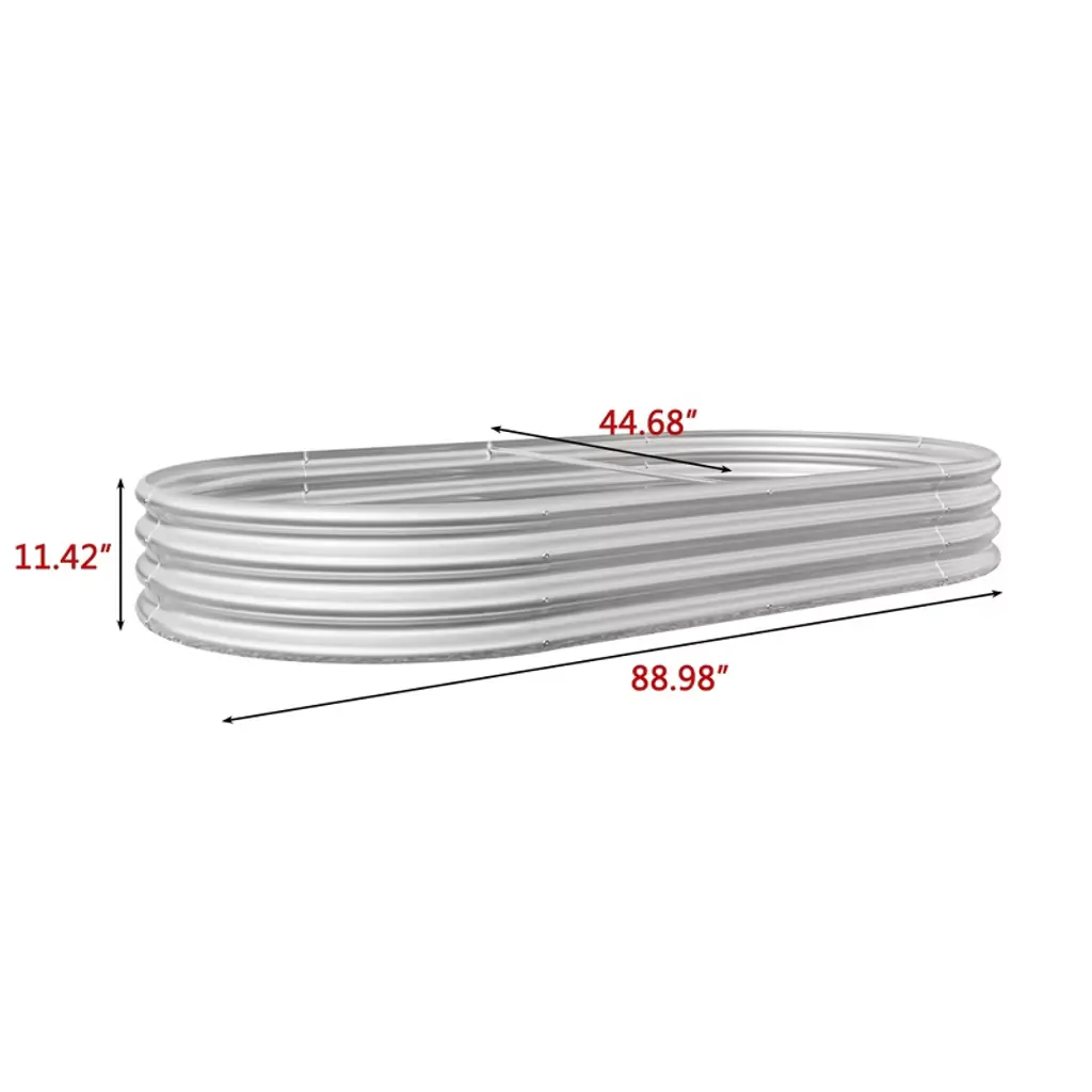 Gulches 88.99"x44.68"x11.42" Silver Oval Raised Garden Planter Bed For Vegetables And Flowers