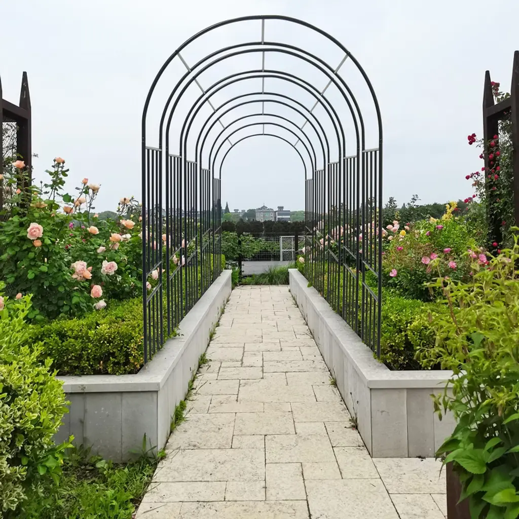 Enhance your garden's elegance with our Black Metal Garden Arch, featuring versatile Planter Stands and Holders. Measuring 42.24" x 17.52" x 85.82", this stylish arbor provides robust support for climbing plants like roses and ivy, creating a private and serene garden space. Its sleek design is perfect for adding a touch of sophistication to any outdoor setting. Easy to assemble with pre-cut and pre-drilled components, this archway combines functionality with aesthetic appeal.