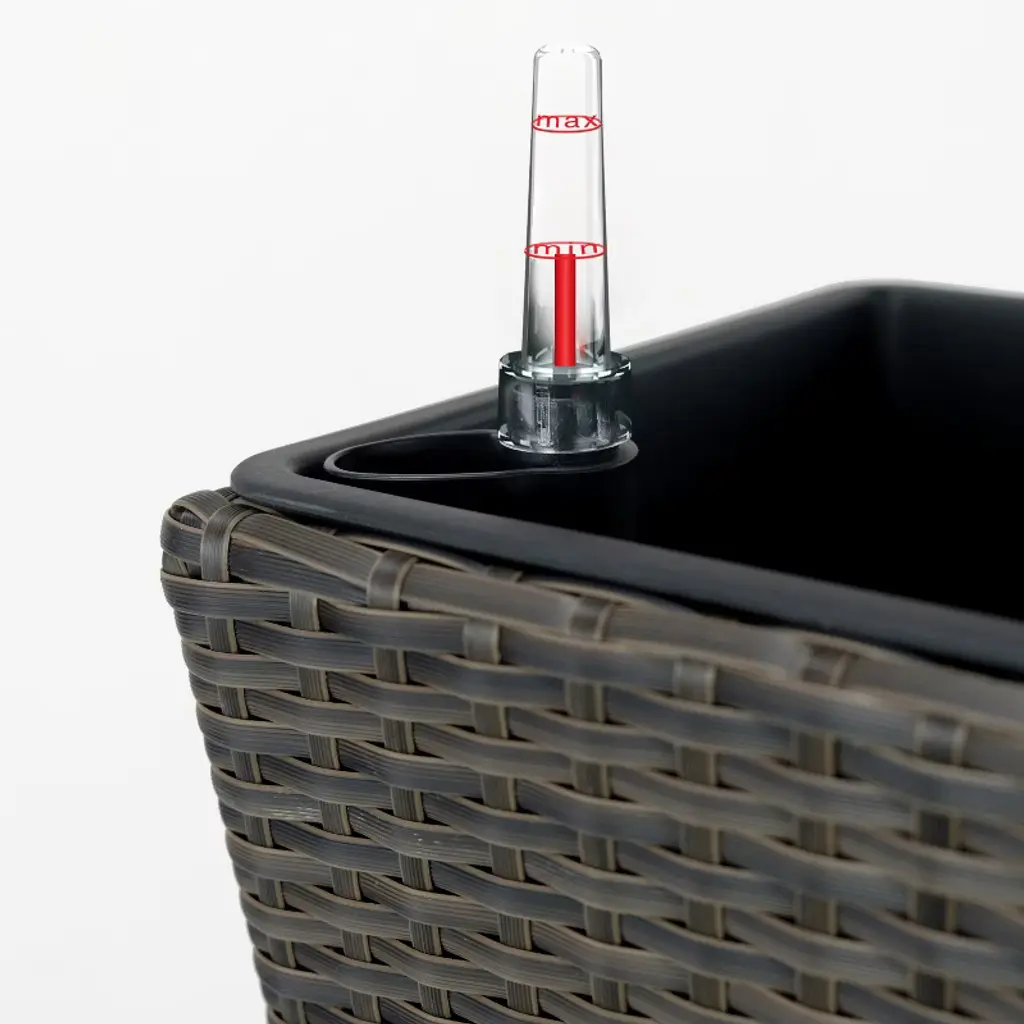 Elevate your gardening experience with the Gulches 2-Pack self-watering planters in elegant expresso. Designed with a sub-irrigation system, these hand-woven wicker planters keep your plants nourished for up to a week, even when you're away. Eco-friendly and certified by GRS, they contribute to a sustainable environment. With UV stabilization and frost resistance, these durable planters are perfect for any weather. Their lightweight design ensures easy assembly and relocation, while the beautiful wicker finish adds a stylish touch to your home or garden.