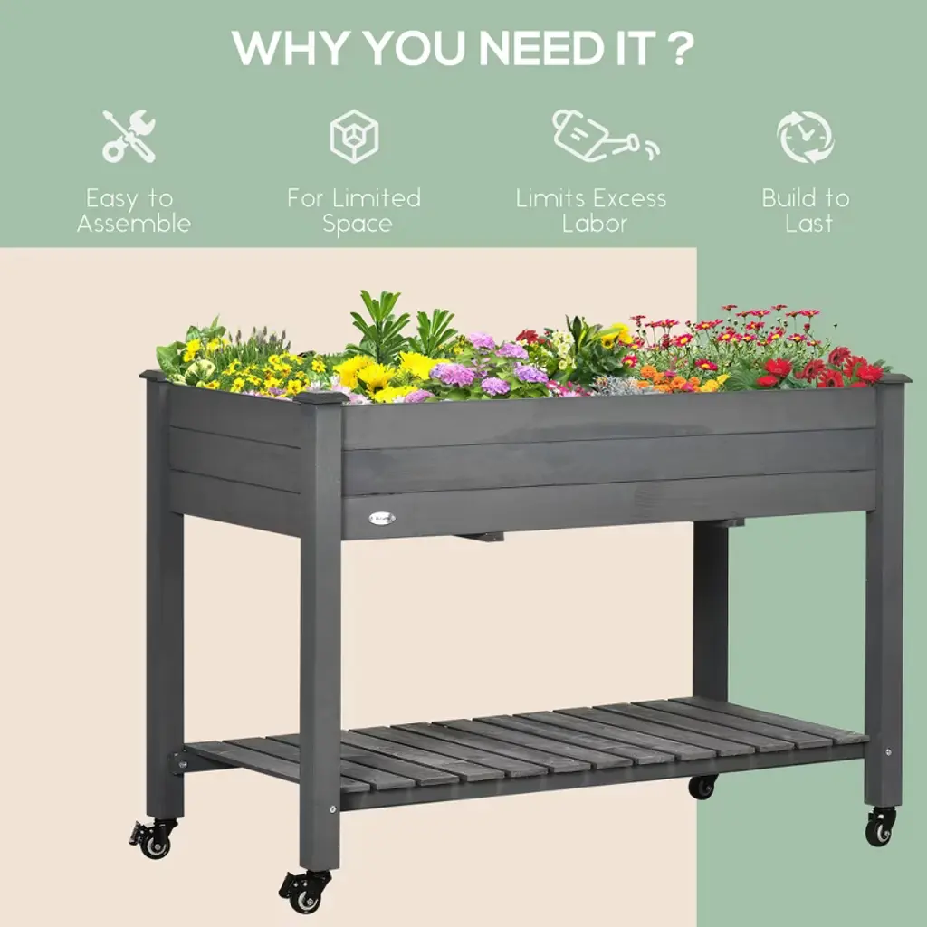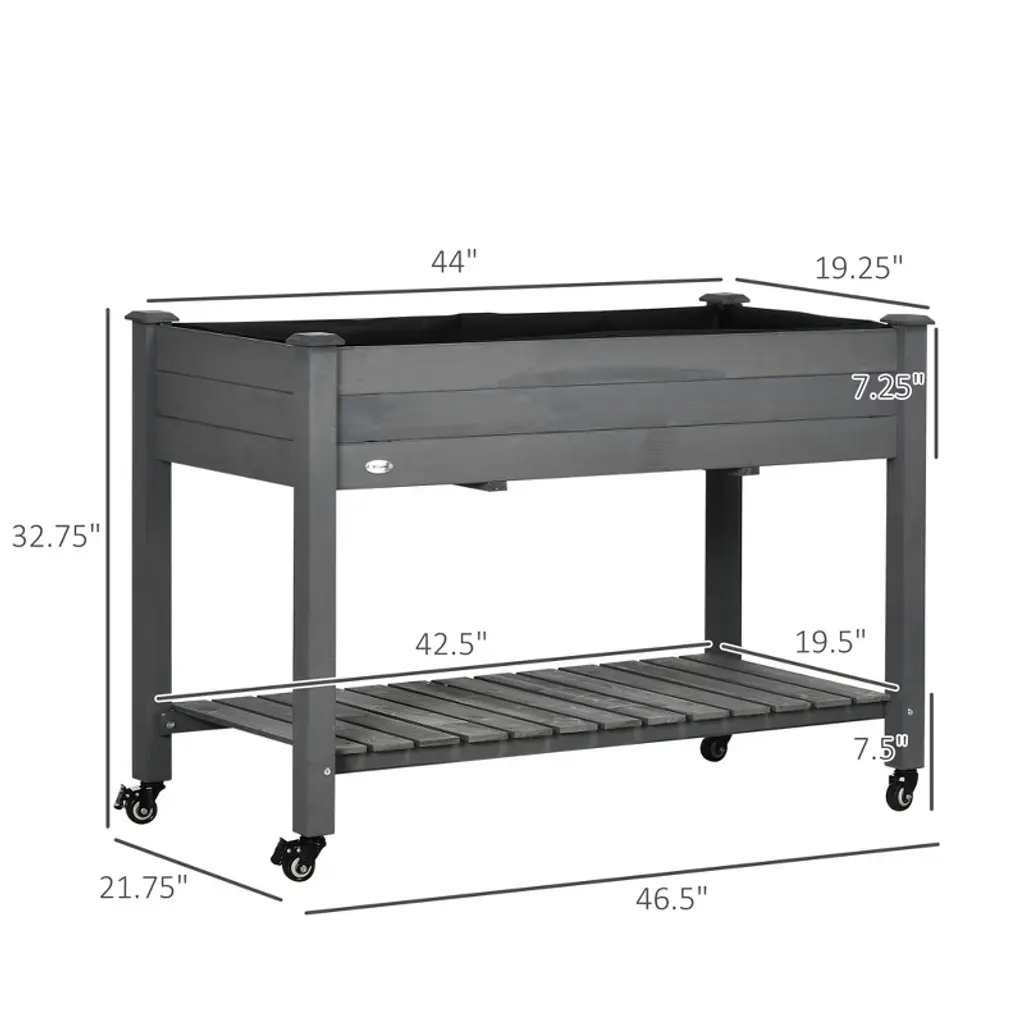 Gulches Mobile Elevated Garden Planter With Storage, Dark Gray