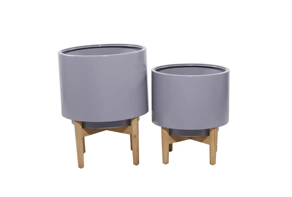 Transform your space with the Gulches Set of 2 Matte Gray Planters. Crafted from high-quality ceramic, these stylish planters come with sturdy wooden stands and drainage holes, making them perfect for succulents, terrariums, and indoor plants. Their modern design adds a chic touch to any room, making them an ideal gift for plant lovers on any occasion.