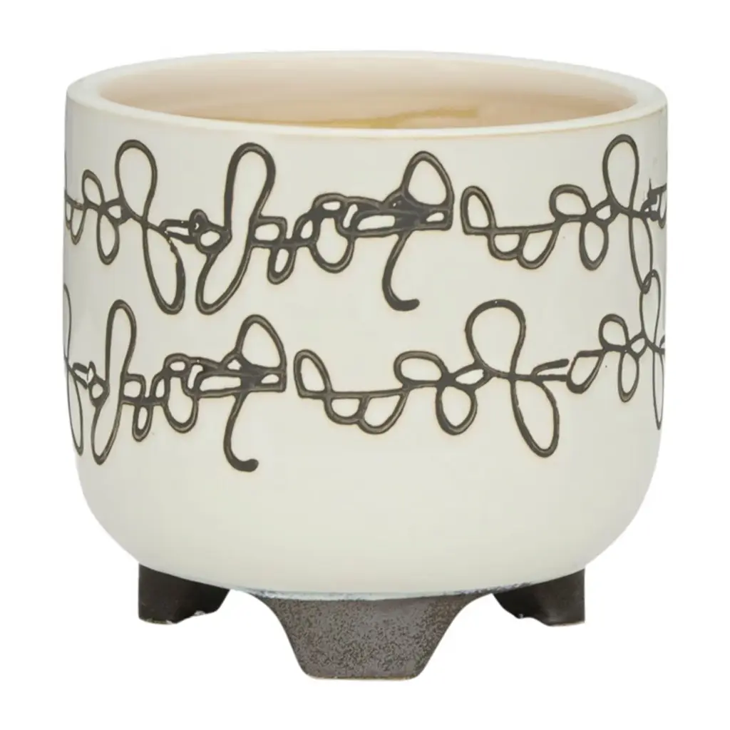 Gulches Set Of 2 Scribble Footed Planters, Beige, 6X6x6" & 8X8x8"