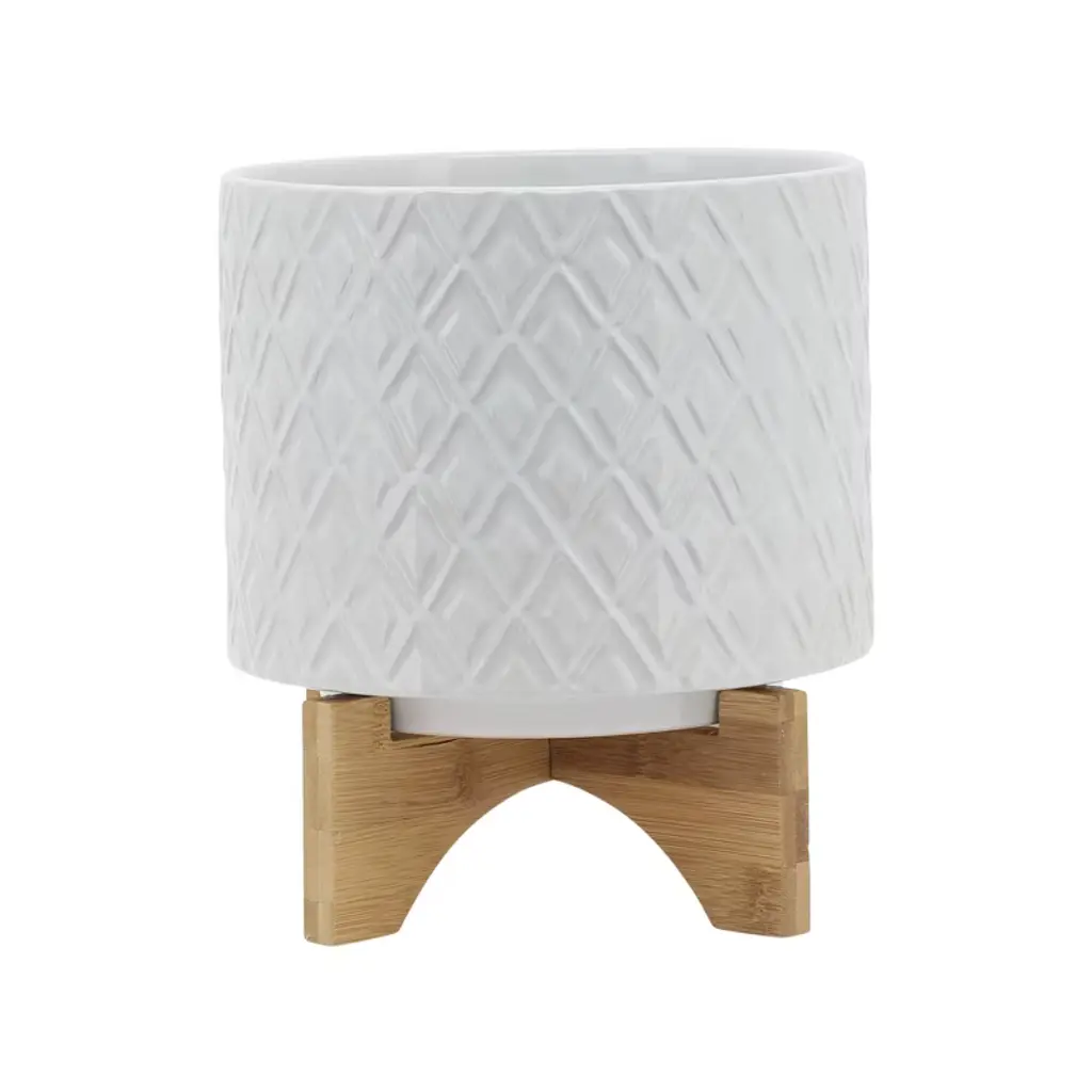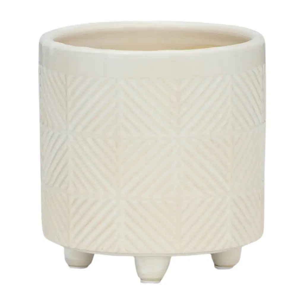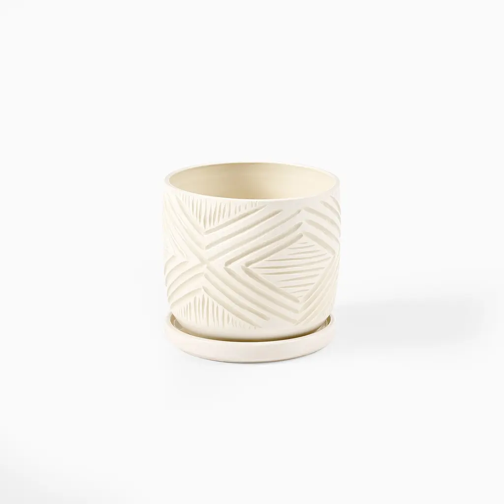 Elevate your indoor garden with the Gulches Set of 2 Textured Planters in Shiny White. Crafted from high-quality ceramic, these stylish planters are perfect for succulents and terrariums. Their modern design adds a touch of elegance to any space, making them an ideal gift for plant lovers. Note: These planters do not have drainage holes.