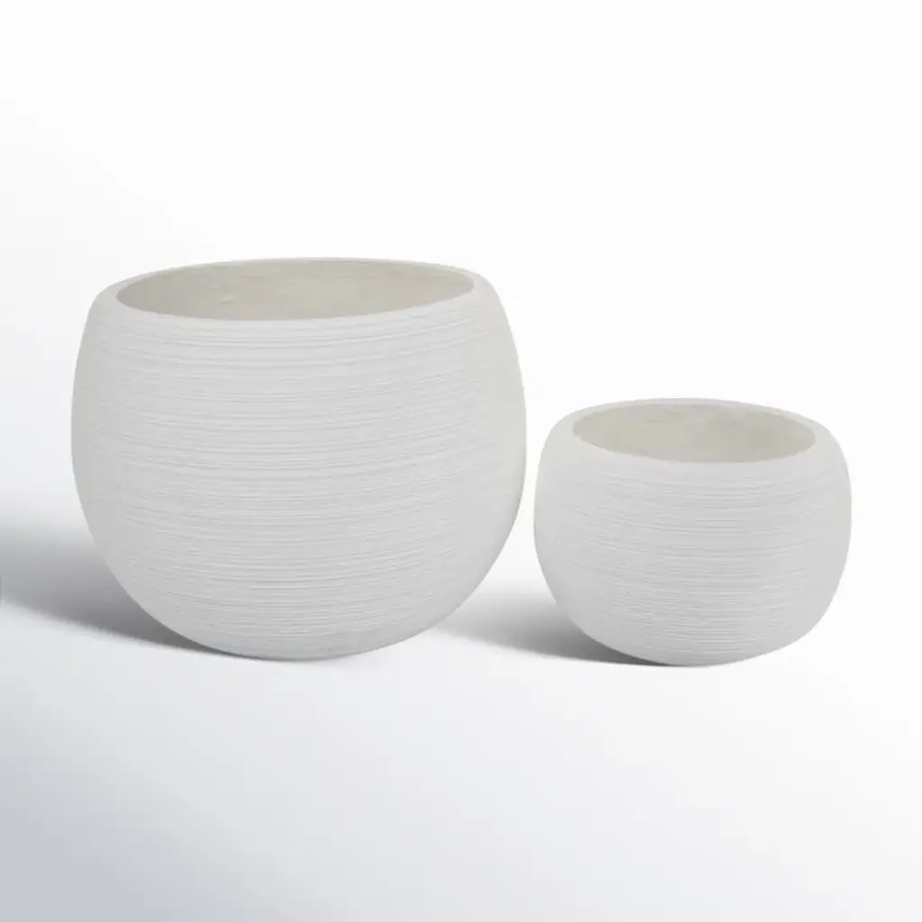 Gulches Set Of 2 Textured Planters, Shiny White, 6X6x7" & 8X8x8"