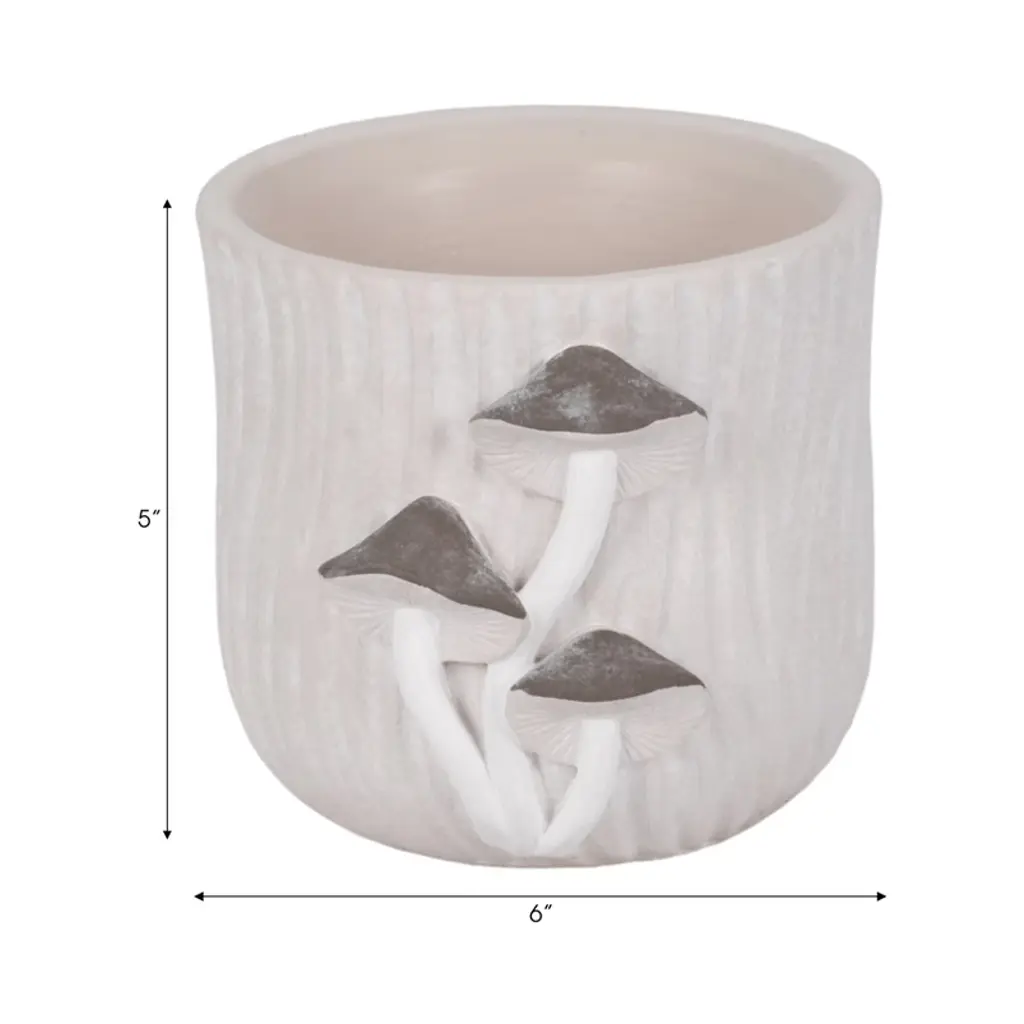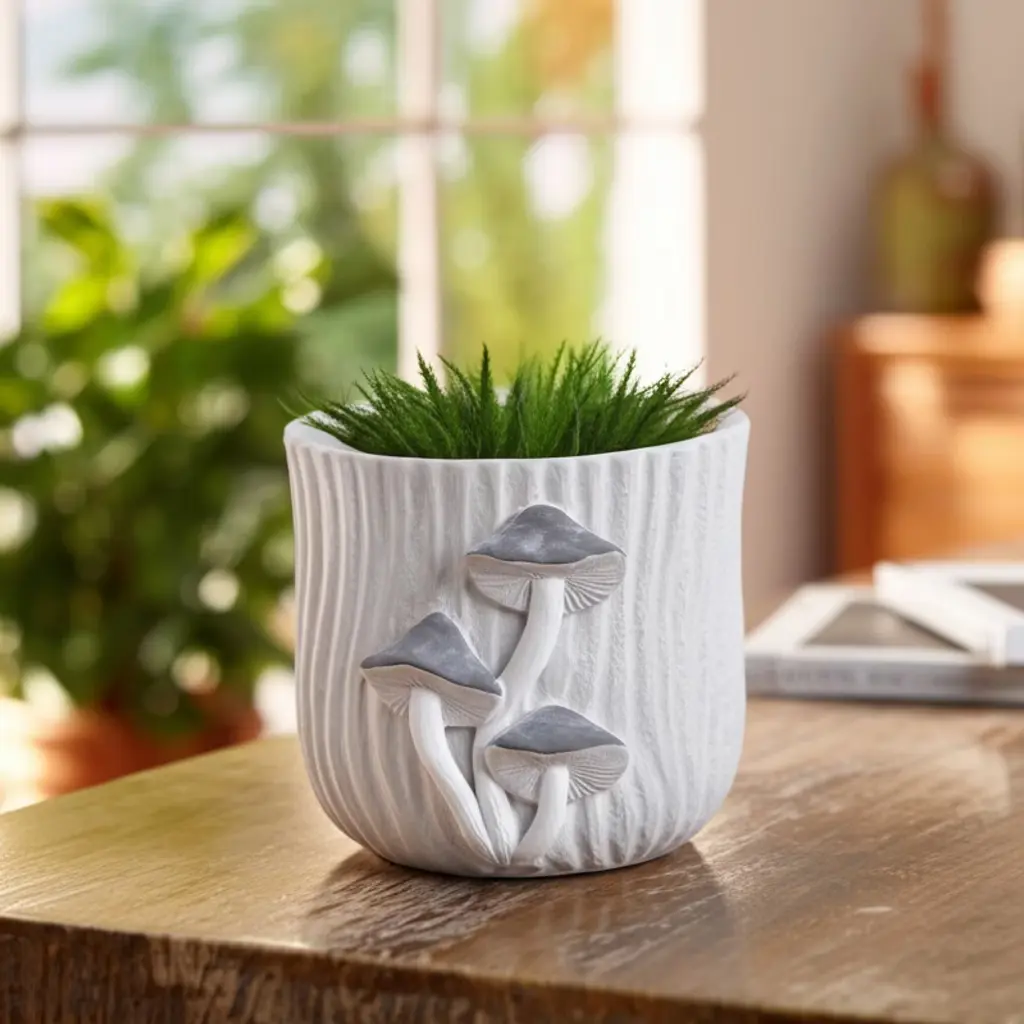 Enhance your indoor and outdoor decor with this beautifully designed gray planter featuring a charming nature-inspired mushroom motif. Crafted from a durable blend of pottery and cement, this planter offers both strength and style, making it a perfect choice for home and garden decoration. The neutral gray tone complements a variety of aesthetics, from rustic farmhouse to modern minimalist, allowing it to seamlessly blend into any space. Measuring 6x6x5 inches, it is ideal for small to medium plants, succulents, herbs, or flowers, adding a refreshing natural touch to your living room, patio, balcony, or office. The realistic mushroom design, combined with a textured tree-like finish, creates a whimsical yet elegant look that effortlessly elevates your plant display. Designed with a drainage hole, it promotes proper water flow to keep plants healthy and prevent overwatering, a common concern for plant lovers. Despite its sturdy construction, this planter remains lightweight enough for easy repositioning, allowing you to refresh your decor whenever inspiration strikes. Whether used as a standalone accent piece or as part of a collection, this planter makes a thoughtful gift for plant enthusiasts, nature lovers, or anyone looking to enhance their space with a unique decorative element. Elevate your home and garden with this stylish and functional planter and bring a touch of nature indoors. Order yours today and create a cozy, inviting atmosphere with this delightful mushroom-themed planter.