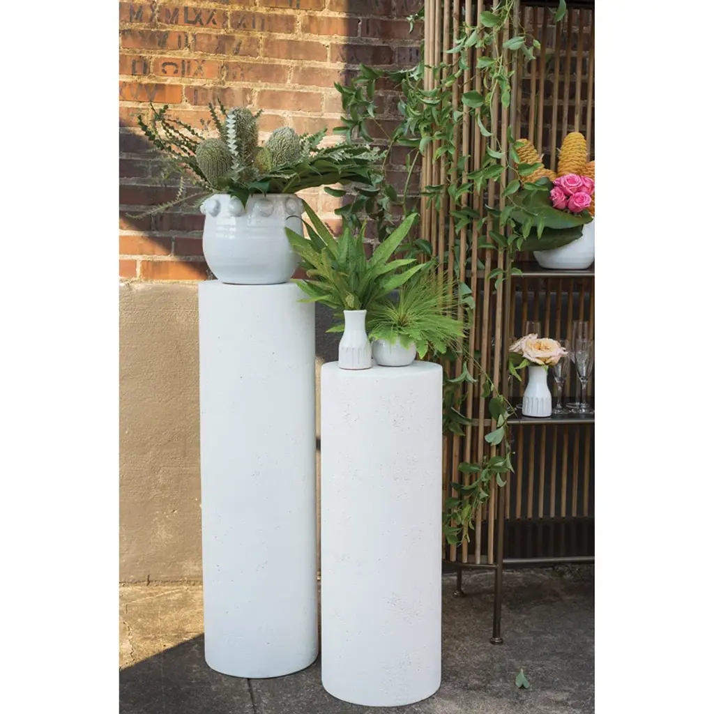 Elevate your greenery. This handcrafted round pot planter is made of fiberglass and composite materials, ensuring durability for indoor and outdoor use. With a sleek and modern design, it adds a touch of elegance to any space. No drainage holes required.