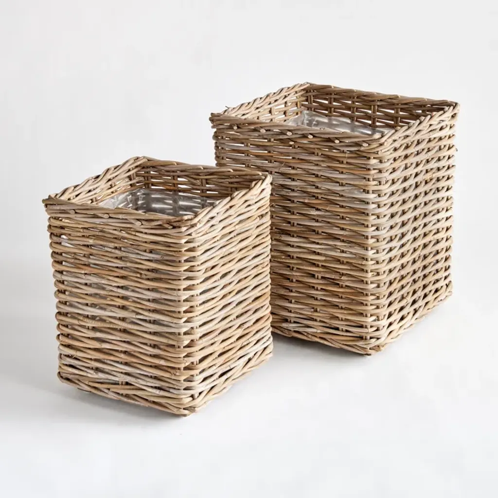 These overscale rectangular planters will steal the show! designed with a solid wood frame for stability, and elevation, and fitted with plastic liners to keep them clean and dry. This set of two make a stunning coordinating set for your creative planting.
