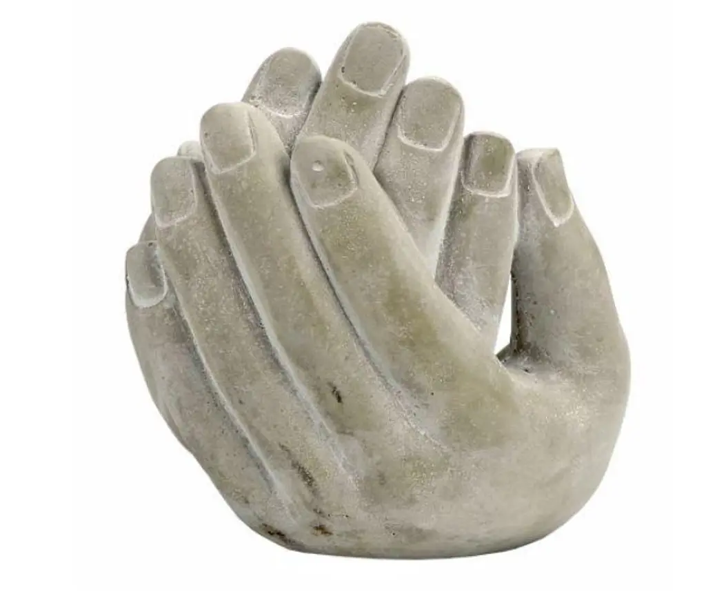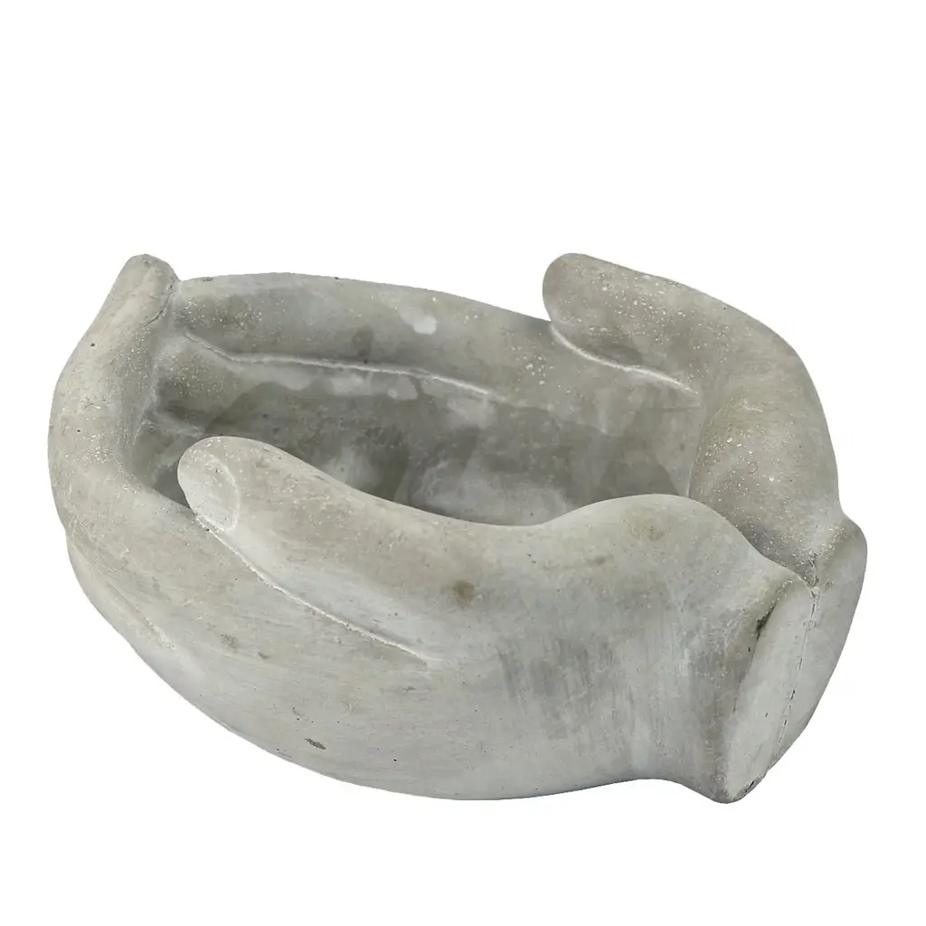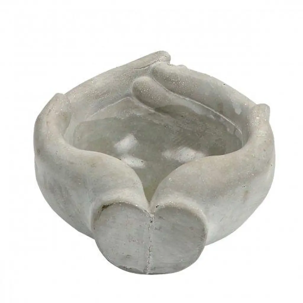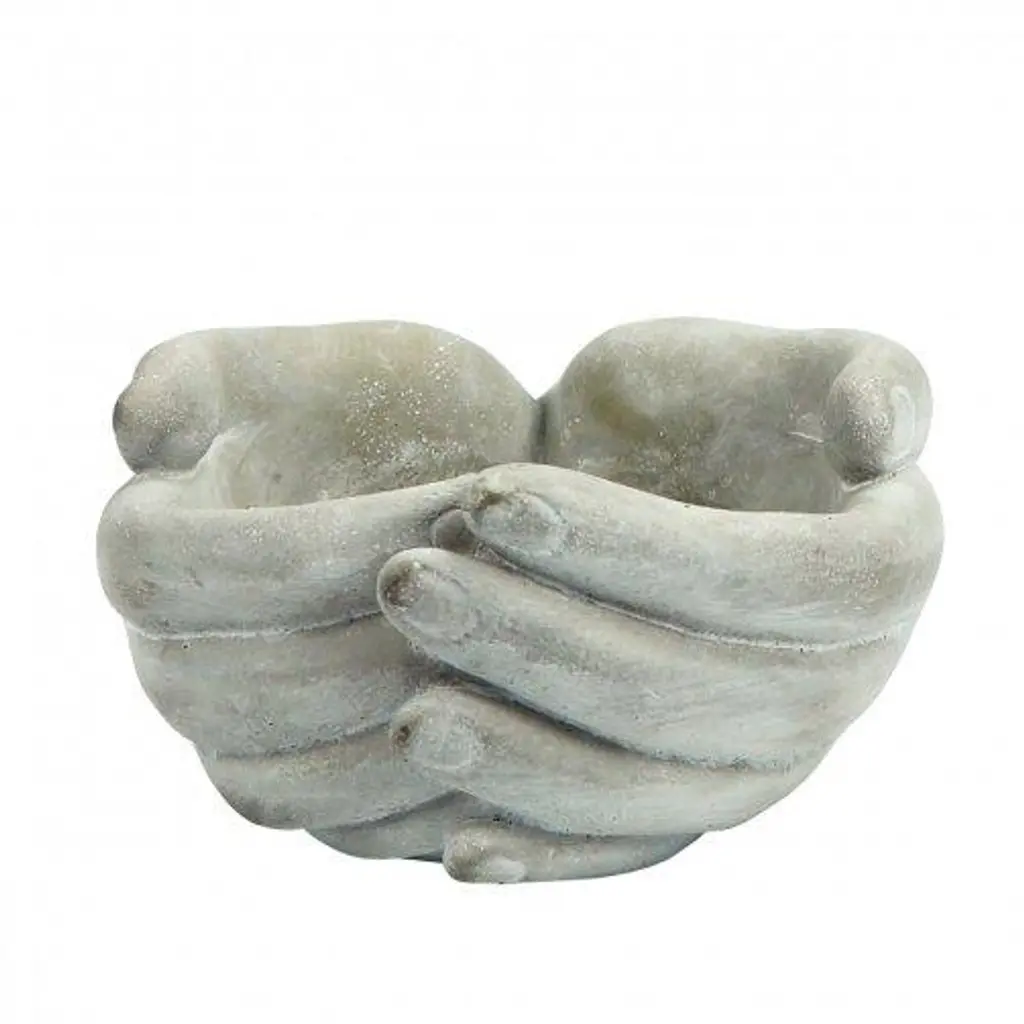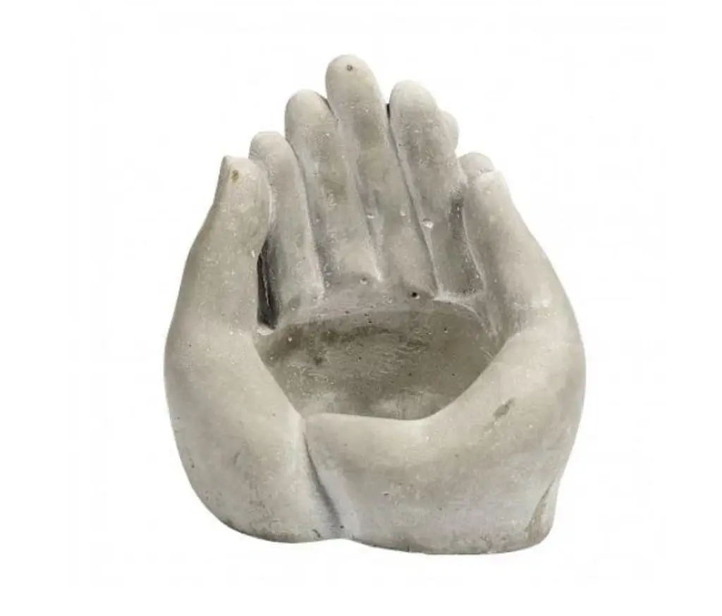 This concrete-cast planter is a playful accent for your home or garden. The cupped hands carefully cradle plants, candles or whatever odds and ends you need an extra hand with.