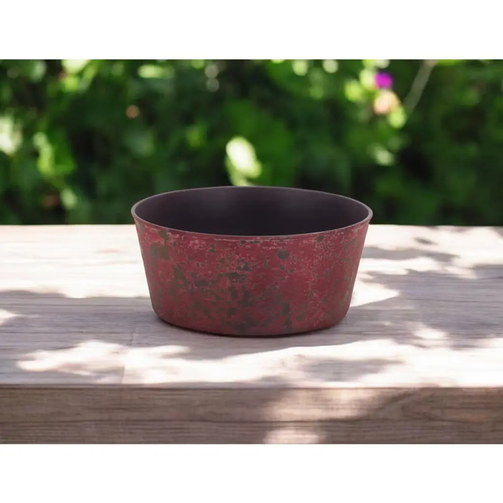 This 10-inch red recycled plastic indoor outdoor round pot planter is only practical, but it's also a beautiful addition to your outdoor decor and serves as a perfect way to bring life into any setting. Made of recycled plastic, this planter not only looks good but is built to last. The round, shape of this planter will bring a sense of wholeness to your backyard. Marking your territory. Use this planter to let the world know that you’re proud of your plants. This piece is practically designed to fit most any aesthetic and outdoor space. 4-inch H x 9.5-inch W x 9.5-inch D