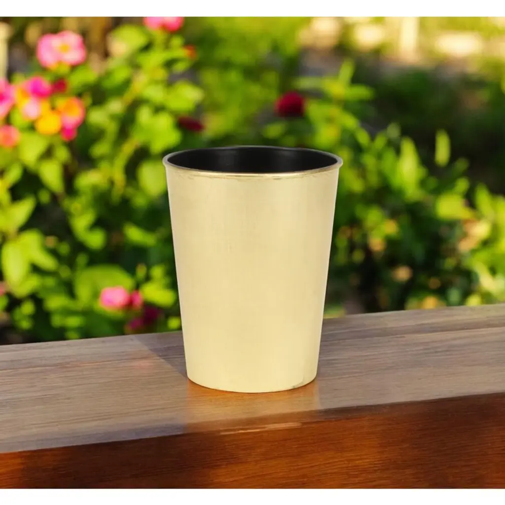 Put your plants where everyone can see them with this 5-inch gold recycled plastic indoor outdoor round pot planter, which is the perfect shape to fit in a variety of spaces. Made of recycled plastic, this planter not only looks good but is built to last. This planter has a classic round shape, which brings an essence of wholeness to your outdoor space. Add color and creativity to your outdoor space when you add potted plants. This piece is practically designed to fit most any aesthetic and outdoor space. 6.5-inch H x 5-inch W x 5-inch D
