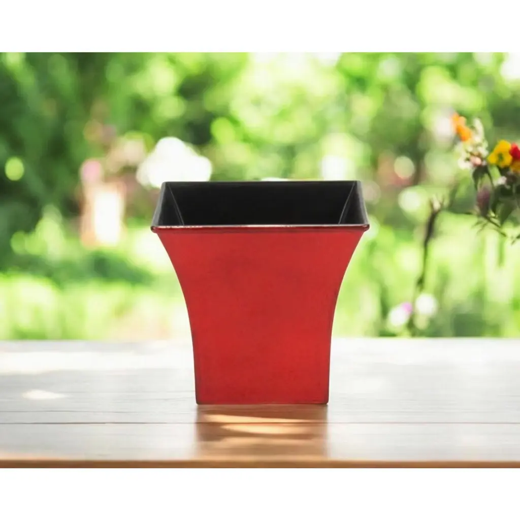 Homeroots 5" Red Recycled Plastic Indoor Outdoor Square Pot Planter