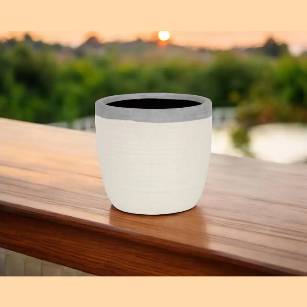 Put your plants where everyone can see them with this 6-inch white and gray mosaic ceramic indoor outdoor round pot planter, which is the perfect shape to fit in a variety of spaces. Made of ceramic with a decorative crackle glaze mosaic pattern around the body and unfinished at the rim, this planter not only looks good but is built to last. This planter has a classic round shape, which brings an essence of wholeness to your outdoor space. This planter is the perfect way to add instant style to your outdoor space. Realize the emotional and health benefits plants bring into our lives. . 5.25-inch H x 5.5-inch W x 5.5-inch D