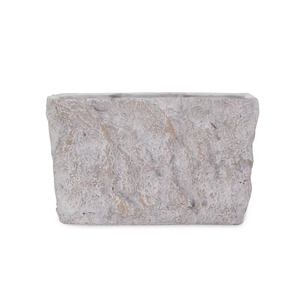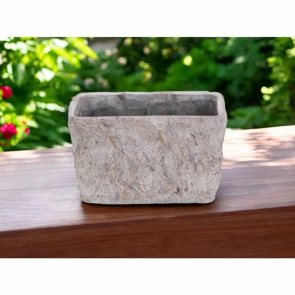 This 9-inch gray speckle glaze cement indoor outdoor rectangular pot planter is only practical, but it's also a beautiful addition to your outdoor decor and serves as a perfect way to bring life into any setting. Made of cement with a decorative speckle glaze pattern, this planter not only looks good but is built to last. Add color and creativity to your outdoor space when you add potted plants. Realize the emotional and health benefits plants bring into our lives. . 5.5-inch H x 9-inch W x 5-inch D